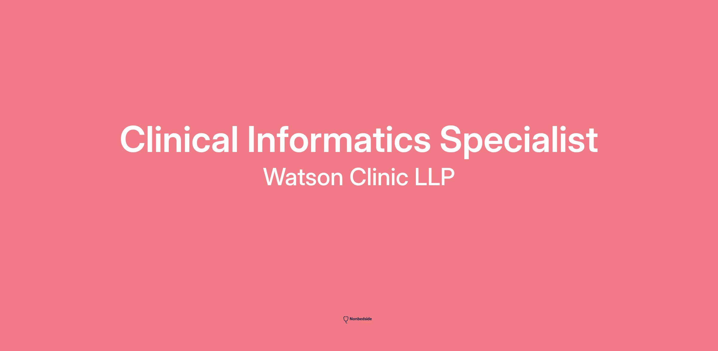 Overview Clinical Informatics Specialist role at Watson Clinic LLP.