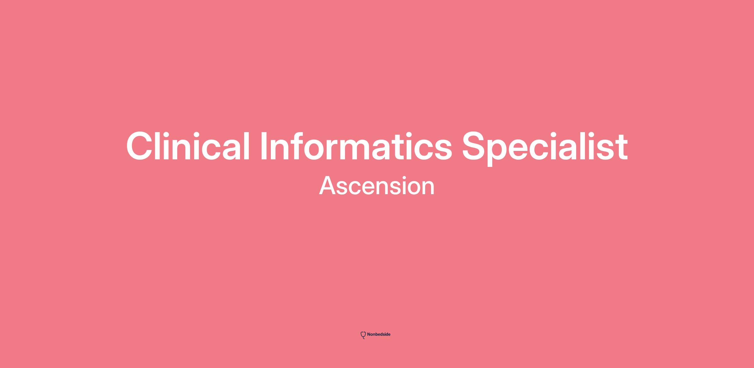 About the role Job Title: Clinical Informatics Specialist
