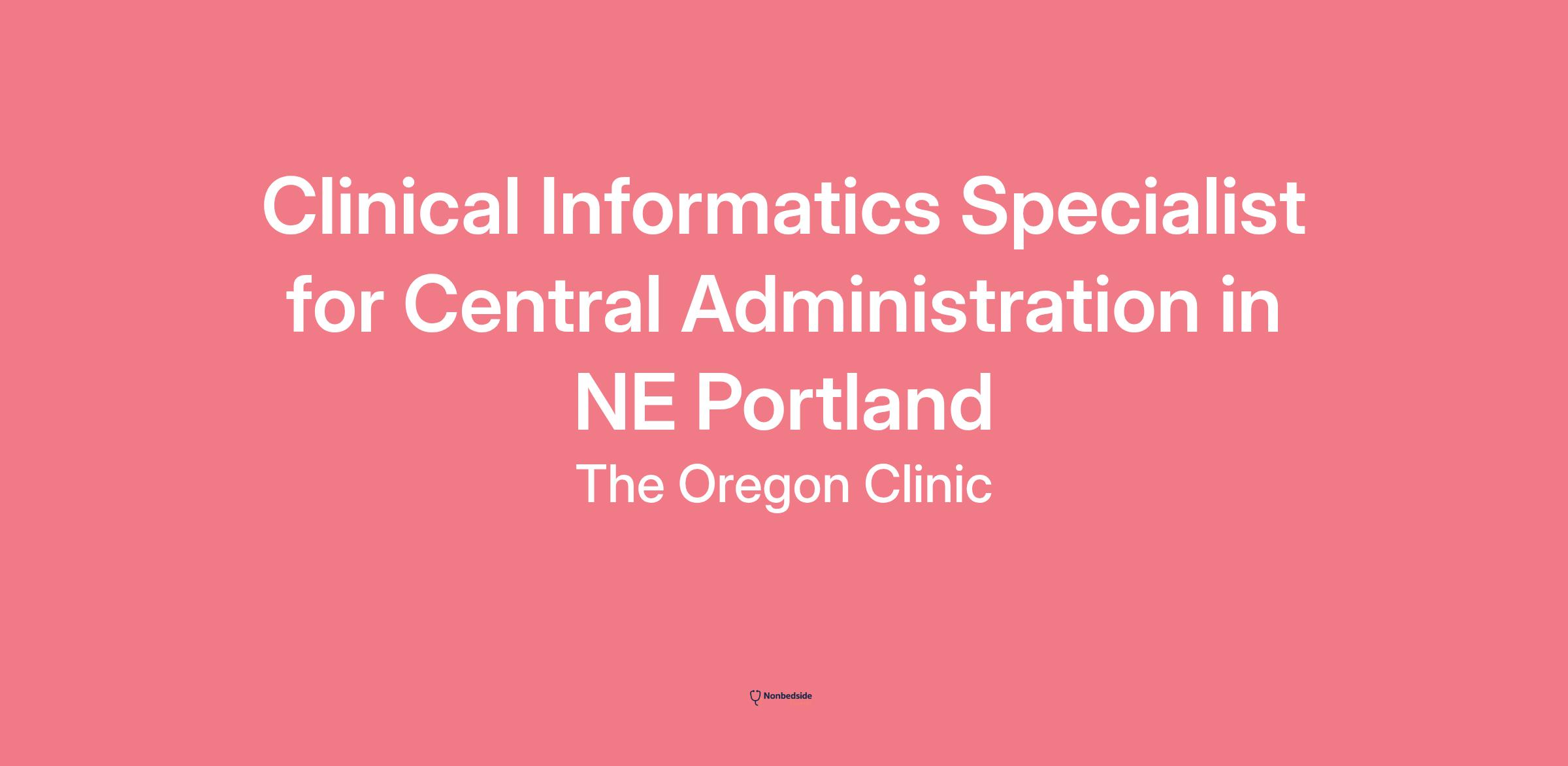 Clinical Informatics Specialist for Central Administration in NE Portland Job Category : Information Technology