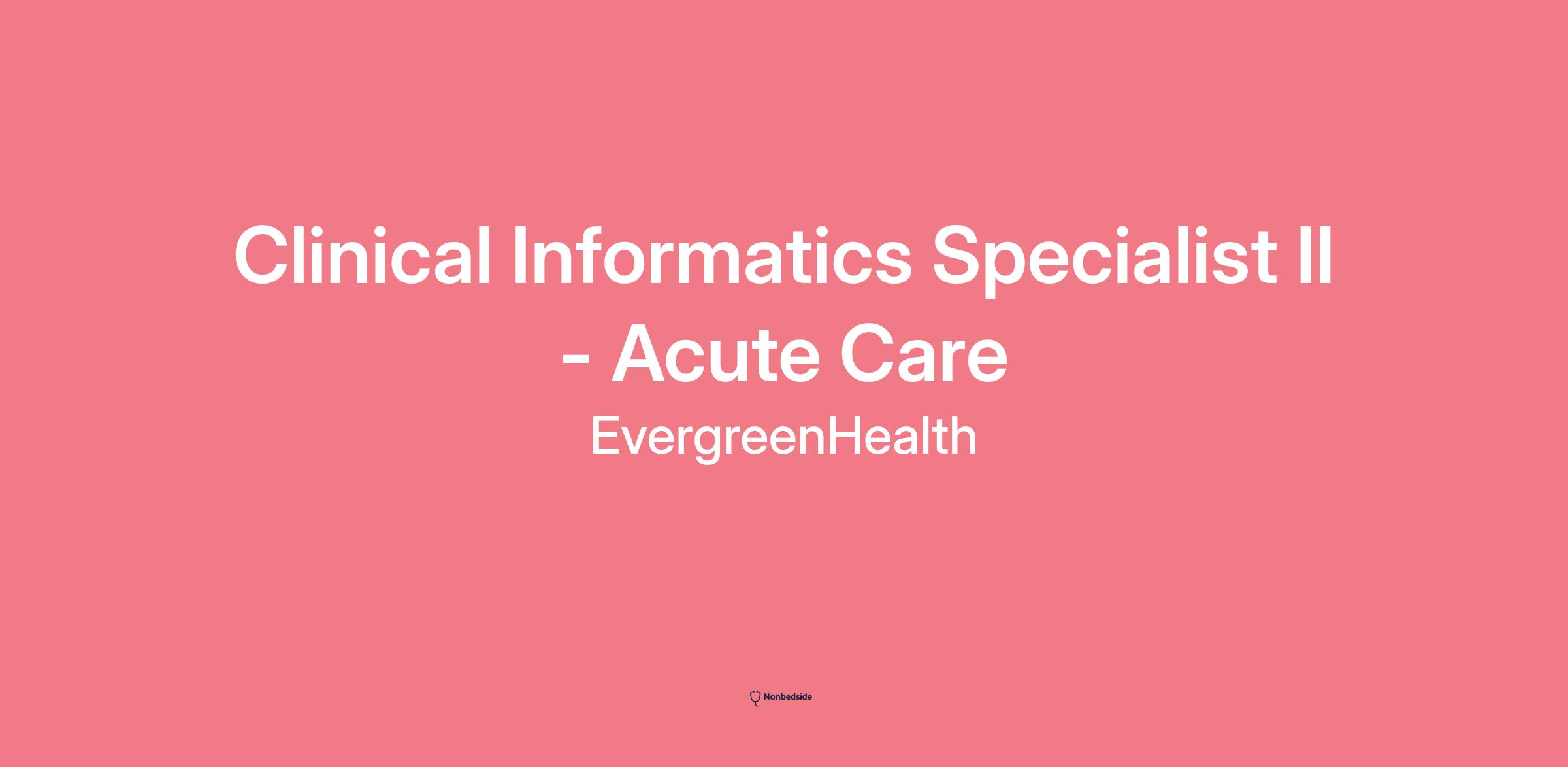 Job Summary Functions as a liaison between EvergreenHealth’s clinical areas and the IT department. This includes the primary responsibility of determining the needs and requirements for clinical applications in acute, ambulatory and home care settings. Works with staff and physicians to optimize the usage of clinical systems through education and training, quality outcomes, and providing support in accordance with organizational goals. Performs workflow analysis of multidisciplinary healthcare provider activities, and translates into optimal system design and content for organizational and unit-based practice.