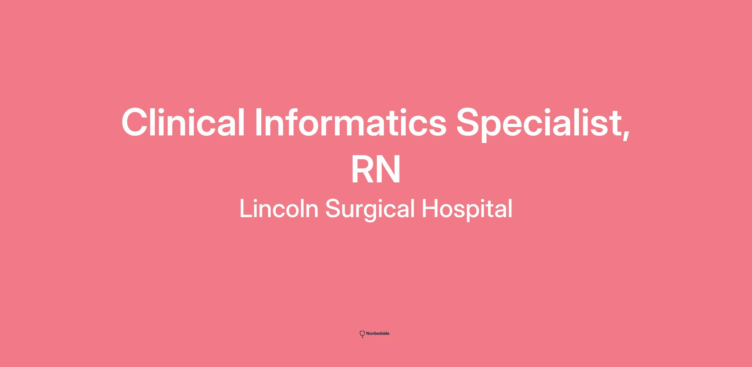 Lincoln Surgical Hospital is an innovative healthcare leader in providing exceptional surgical services for our patients. Our dedicated physicians and staff strive to achieve optimal surgical outcomes in a patient focused atmosphere. We are looking for exceptional people to provide extraordinary care as a Clinical Informatics Specialist.