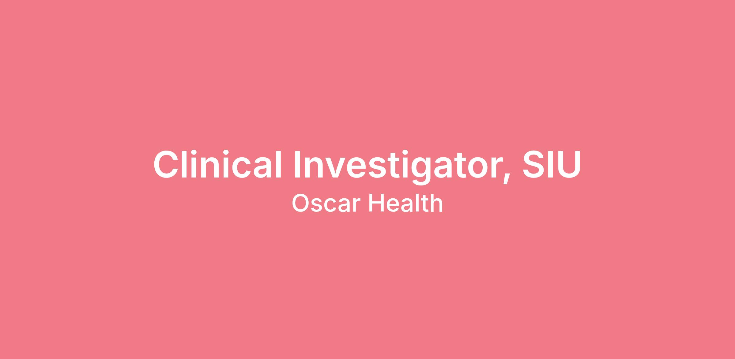 Hi, we're Oscar. We're hiring a Senior Analyst, Special Investigations Unit Clinical Investigator to join our SIU.