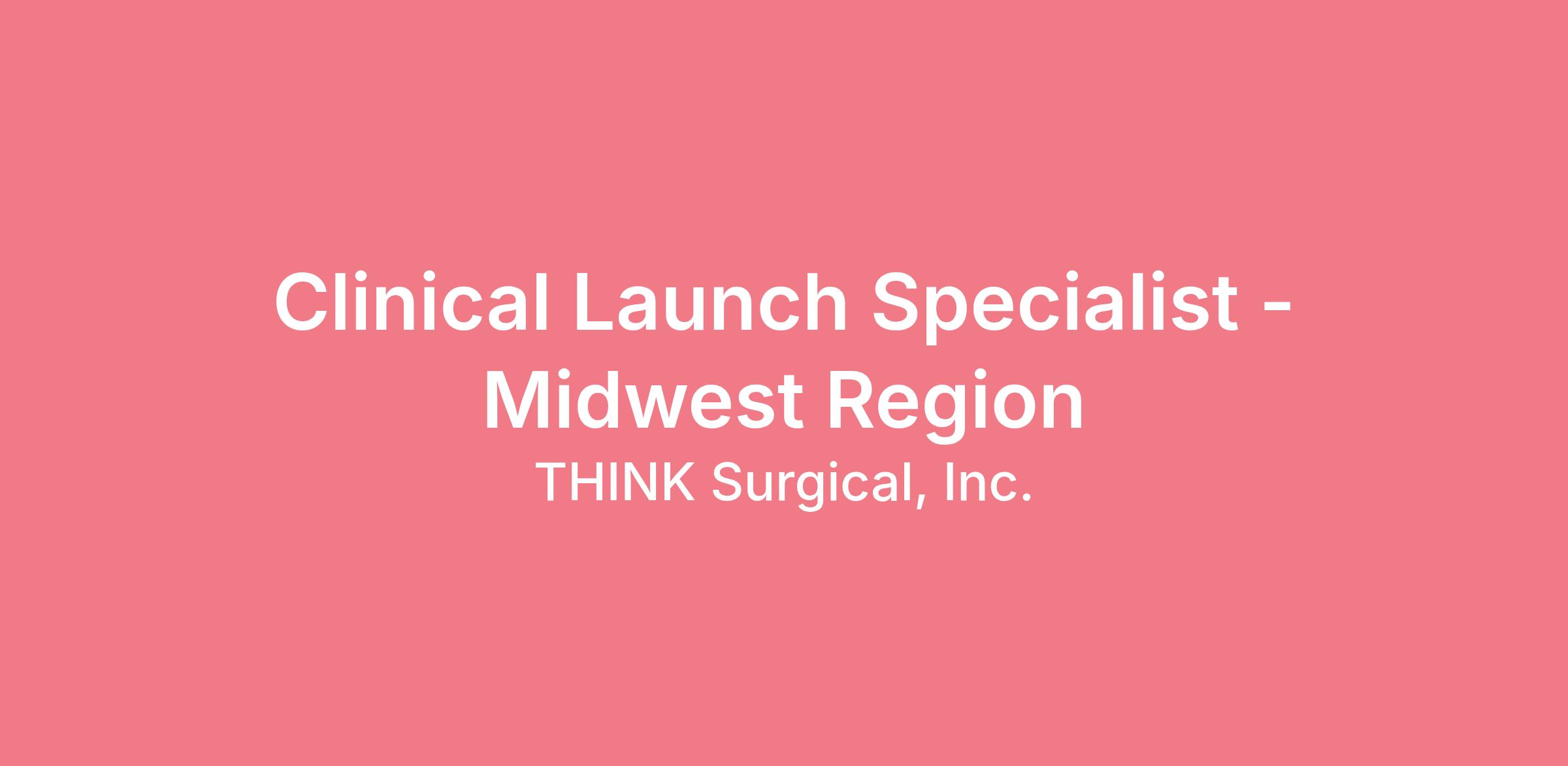 The Clinical Launch Specialist will support the commercialization of THINK Surgical’s robotic technologies in the orthopedics space. They will be responsible for assisting the Clinical Launch Director in creating (and then improving) a training program to educate and train hospital staff and surgeons to independently use our robotic technology in the operating room without clinical support from THINK Surgical (i.e., self-sufficiency). The Clinical Launch Specialist will execute the training plan in several different environments including, but not limited to, the operating room, cadaver labs, saw-bone labs, virtual reality, etc. The Clinical Launch Specialist will also participate in demonstrations of THINK’s robotic technology to potential new customers. The Clinical launch Specialist must be able to work in a fast-paced, high-stressed environment. Previous operating room (OR) experience is required, and previous robotic training experience is a plus. Must have proven experience in clearly and concisely presenting technical information to surgeons, staff, and other hospitals employees. This position will require extensive travel throughout the United States. This position is based remotely in the Midwest Region, ideally Illinois, Nebraska, and Minnesota.
