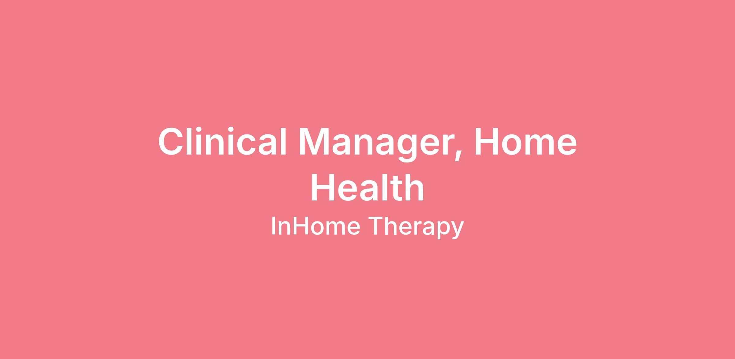 Clinical Manager, Home Health
