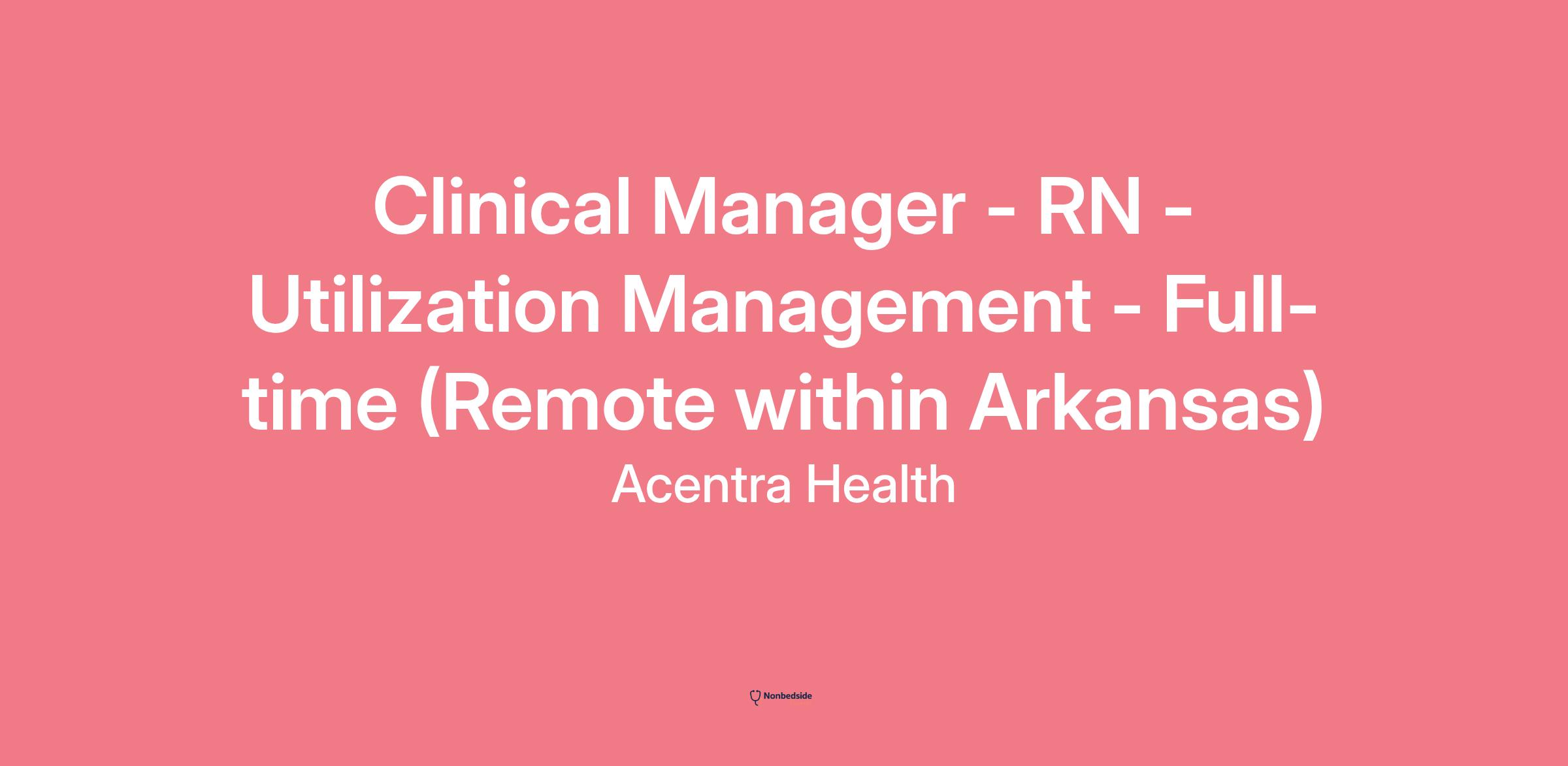 Clinical Manager - RN - Utilization Management - Full-time (Remote within Arkansas)