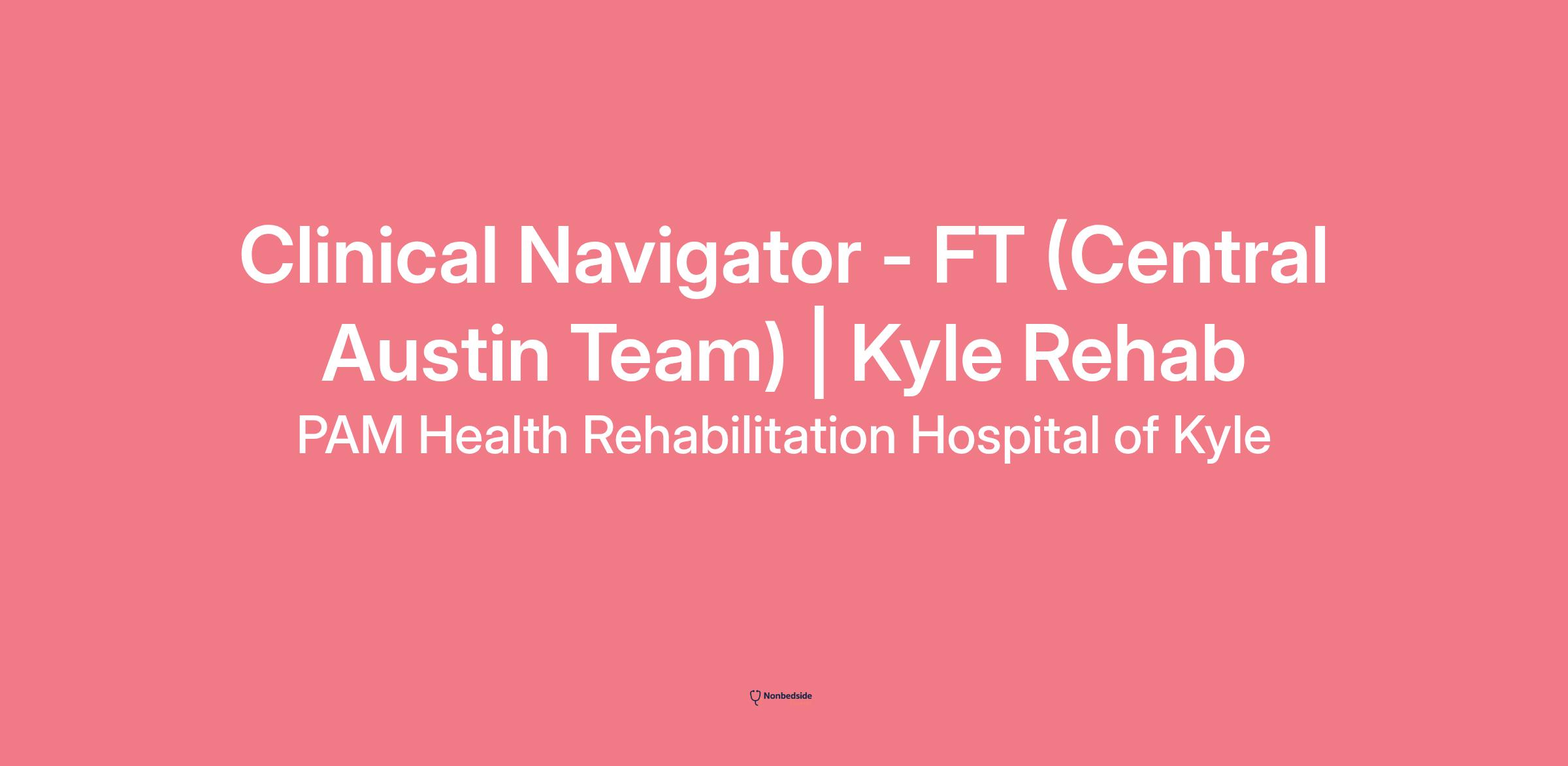 Join to apply for the Clinical Navigator - FT (Central Austin Team) | Kyle Rehab role at PAM Health Rehabilitation Hospital of Kyle