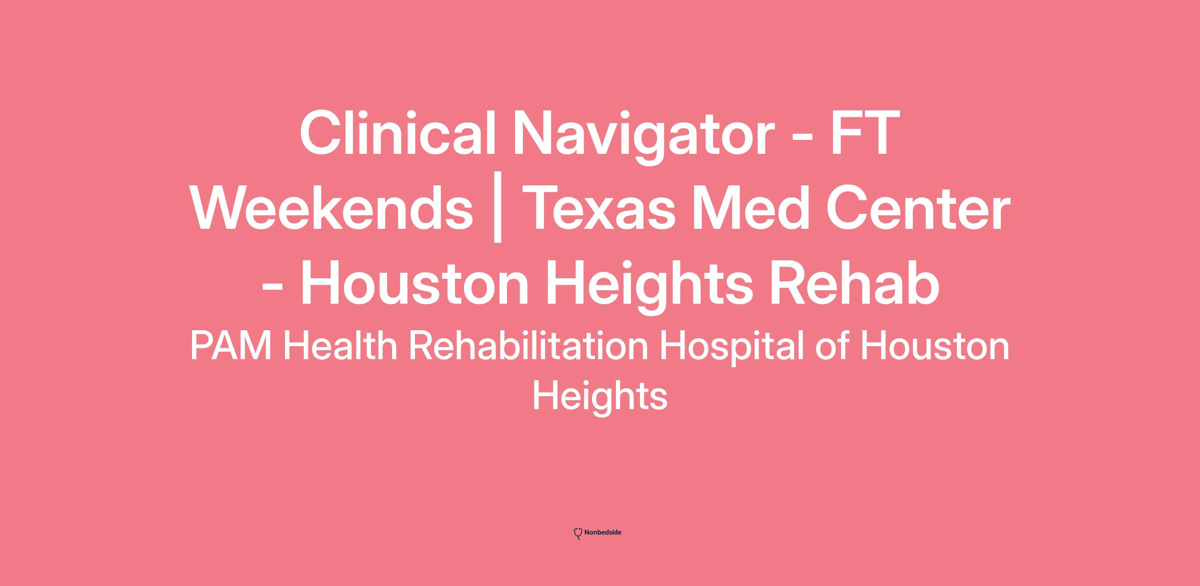 Overview Are you passionate about your career? Results driven? Love helping people? Then PAM Health wants to speak with you. As a Clinical Navigator, you are the face of our hospital. You will meet people at their worst, and by sharing our success and the potential they can reach during their rehab stay, they will know they have the support needed to achieve their goals.