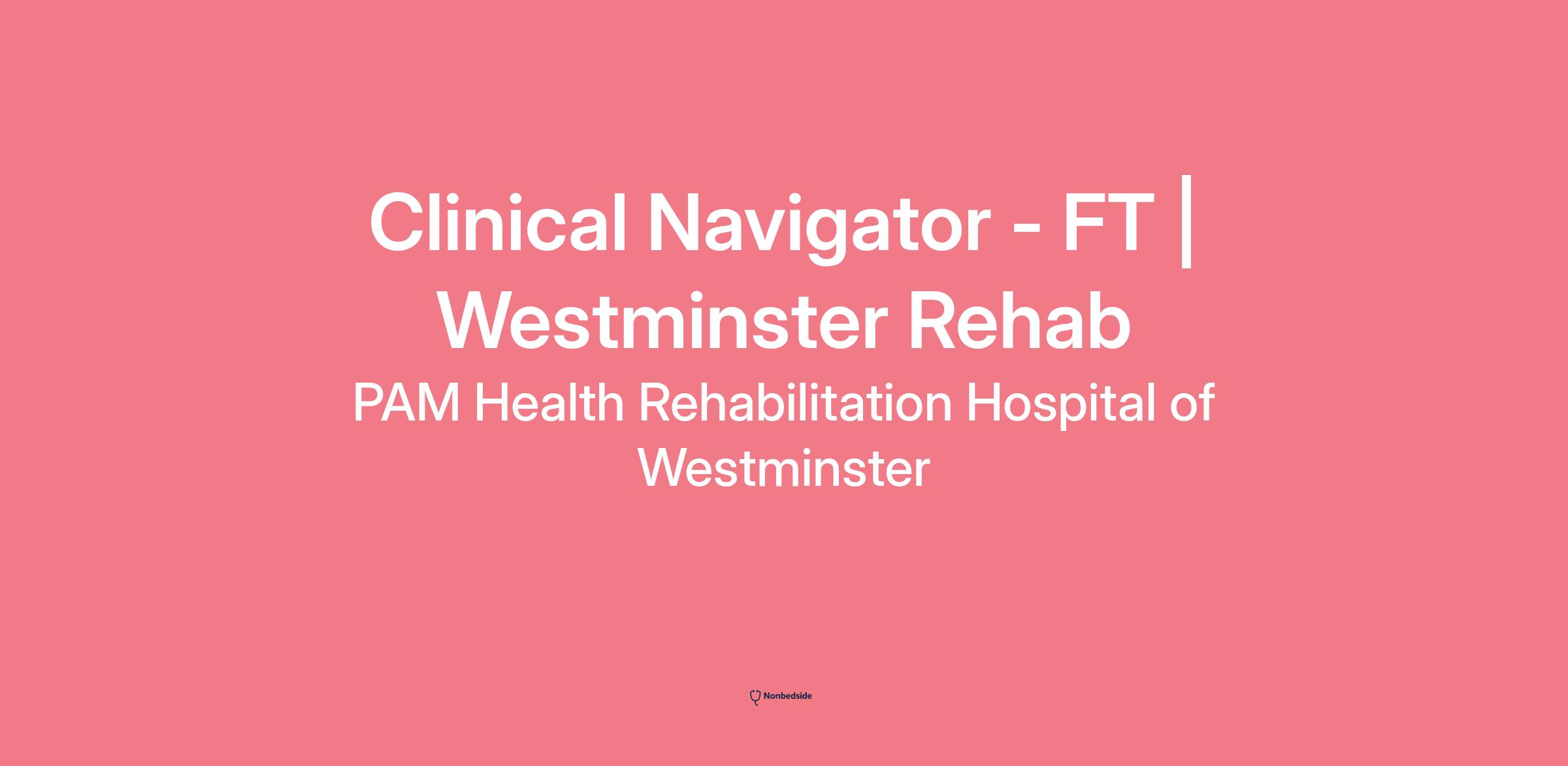 Join to apply for the Clinical Navigator - FT | Westminster Rehab role at PAM Health Rehabilitation Hospital of Westminster