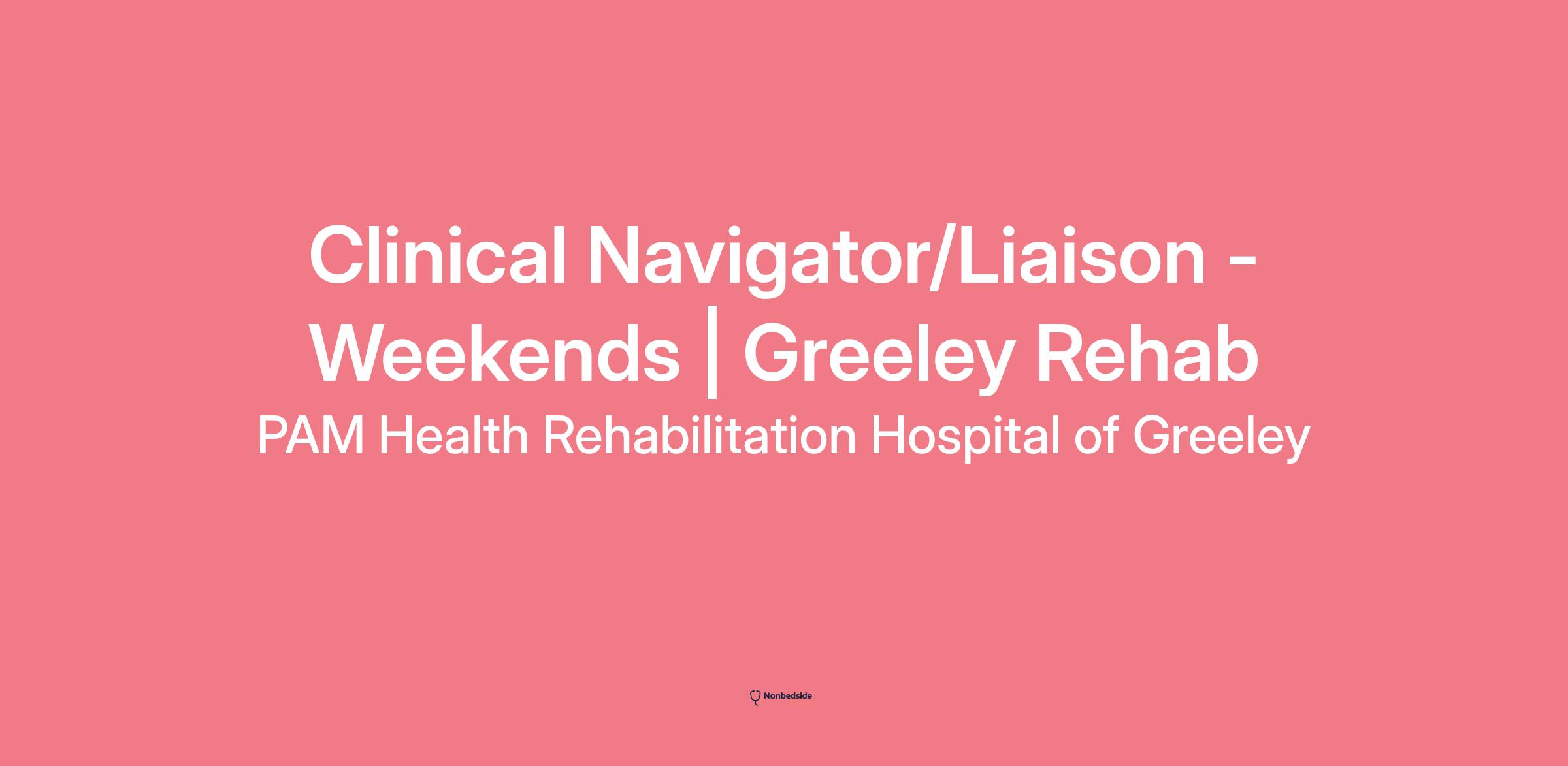 Join to apply for the Clinical Navigator/Liaison - Weekends | Greeley Rehab role at PAM Health Rehabilitation Hospital of Greeley