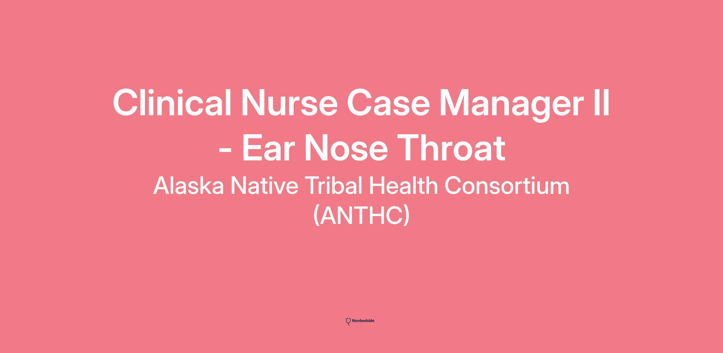 Join to apply for the Clinical Nurse Case Manager II - Ear Nose Throat role at Alaska Native Tribal Health Consortium (ANTHC).