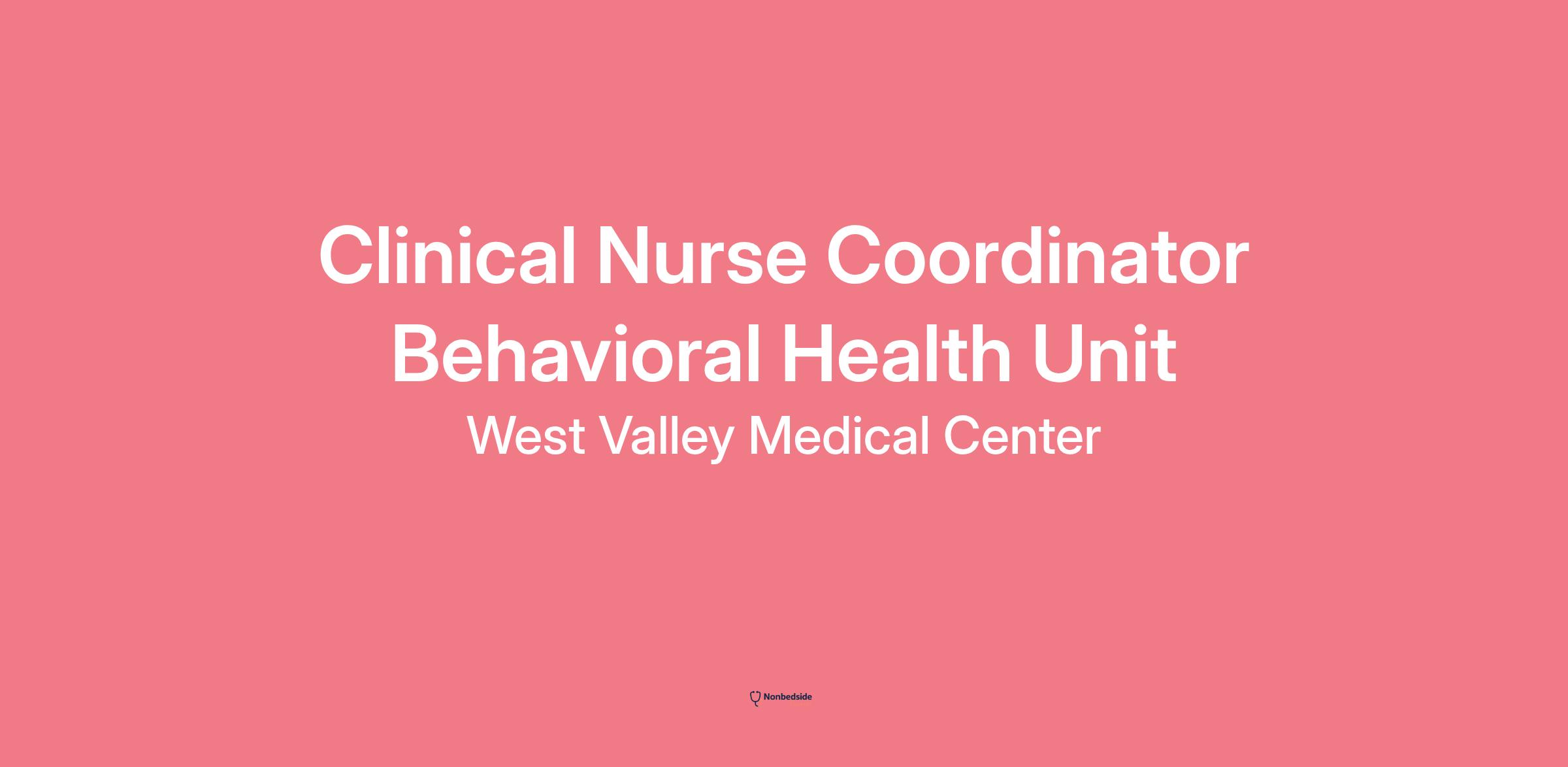 Do you currently have an opportunity to make a real impact with your work? With over 2,000 sites of care and serving over 31.2 million patient interactions every year, nurses at West Valley Medical Center have the opportunity to make a real impact. As a(an) Clinical Nurse Coordinator Behavioral Health Unit you can be a part of change.