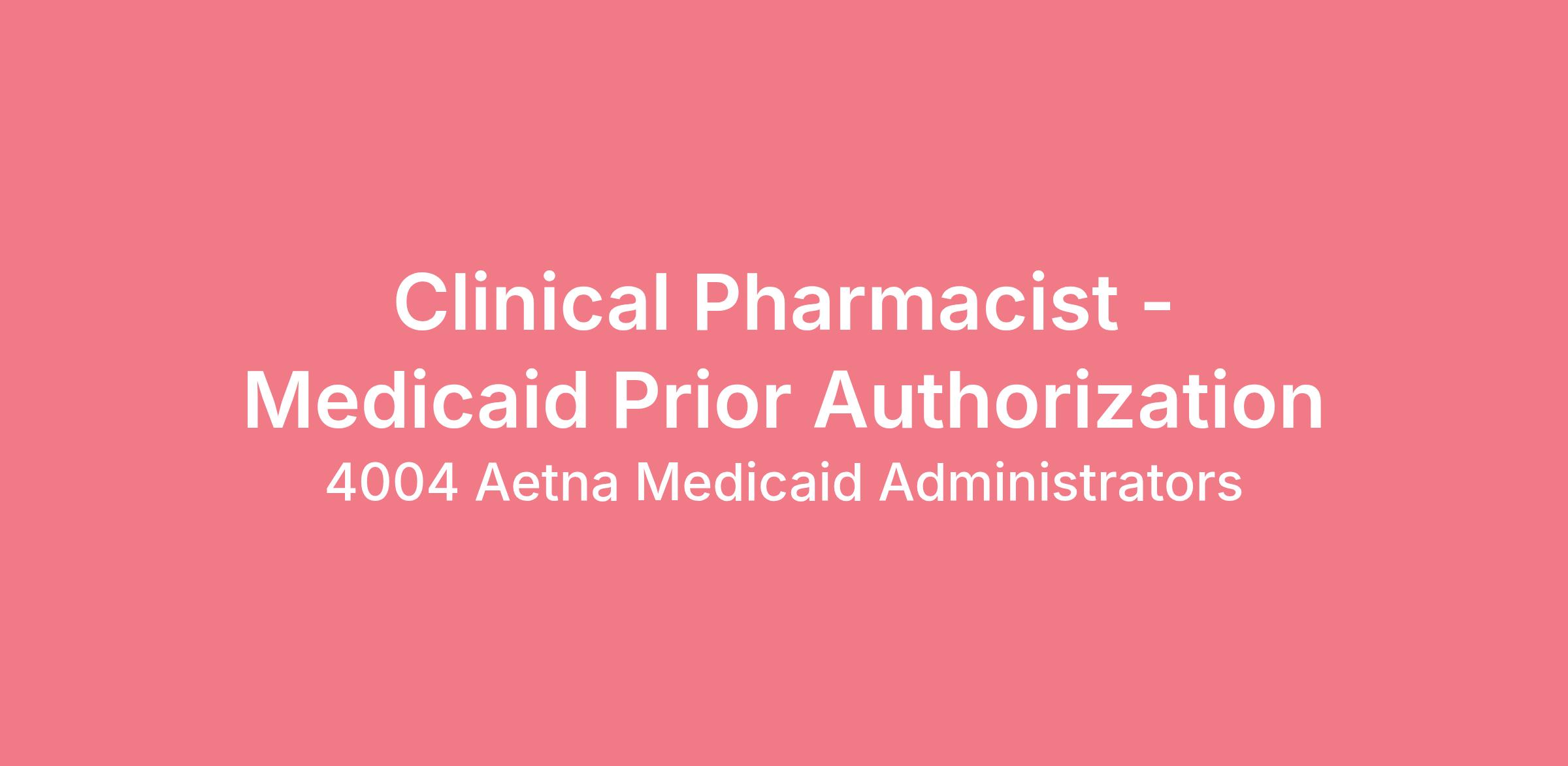 This is a Clinical Pharmacist position supporting Medicaid Prior Authorization. The position is remote.
