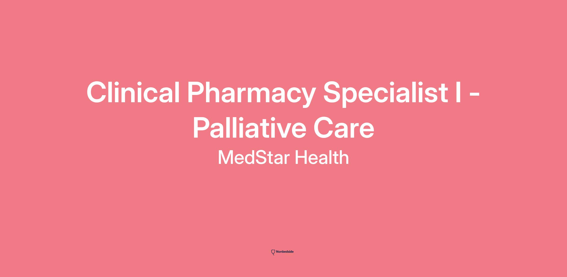 Clinical Pharmacy Specialist I - Palliative Care Join to apply for the Clinical Pharmacy Specialist I - Palliative Care role at MedStar Health .