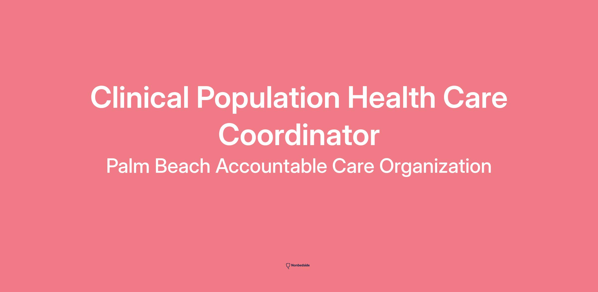 Join to apply for the Clinical Population Health Care Coordinator role at Palm Beach Accountable Care Organization .