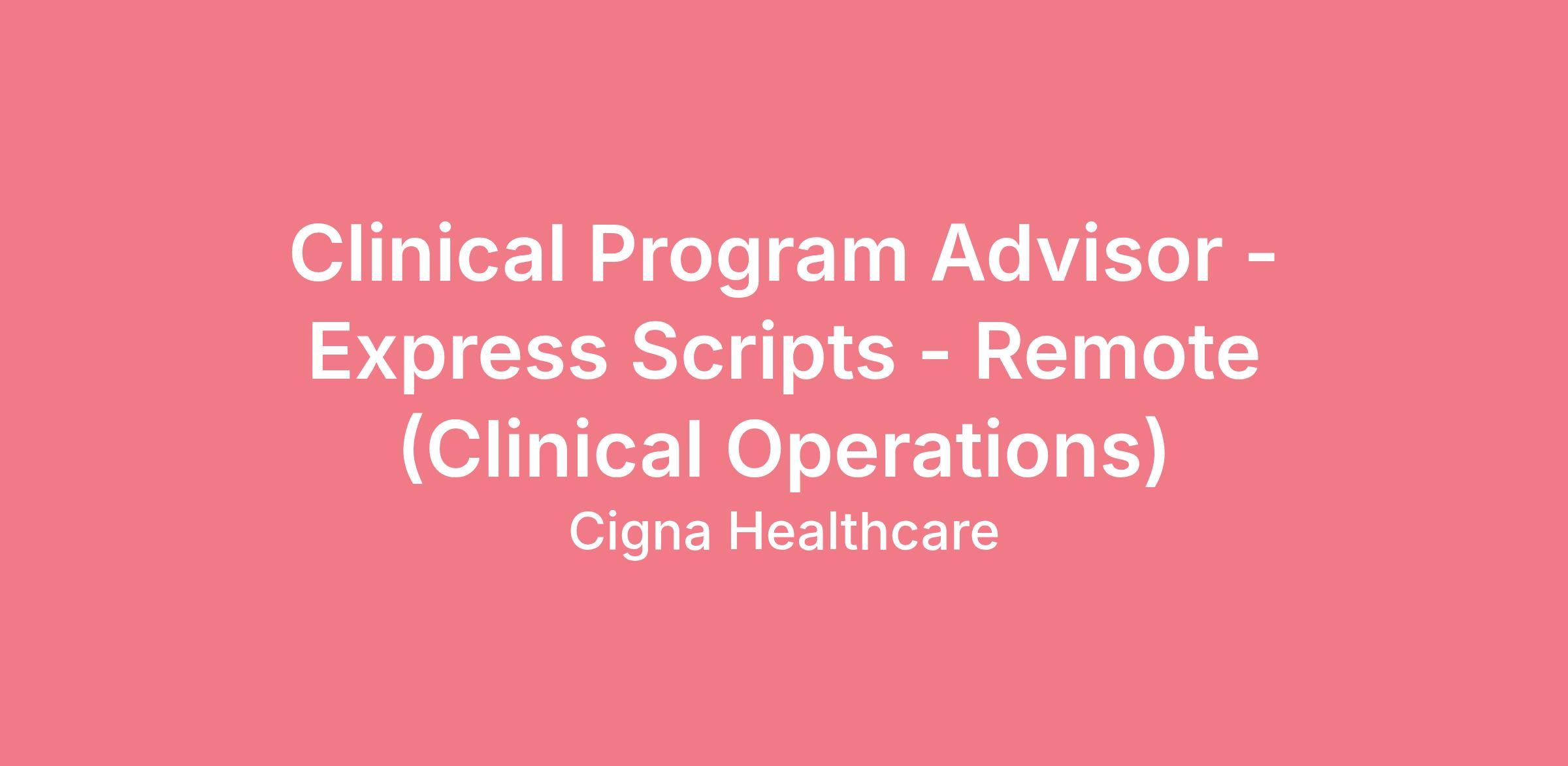 Clinical Program Advisor - Express Scripts - Remote (Clinical Operations)