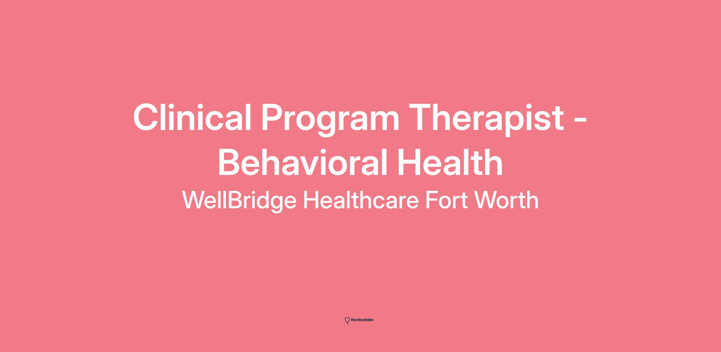 WellBridge Healthcare Fort Worth is part of Lifepoint Health, a diversified healthcare delivery network with facilities coast to coast. We are driven by a profound commitment to prioritize your well-being so you can provide exceptional care to others. As an Clinical Program Therapist joining our team, you're embracing a vital mission dedicated to making communities healthier ®. Join us on this meaningful journey where your skills, compassion and dedication will make a remarkable difference in the lives of those we serve.