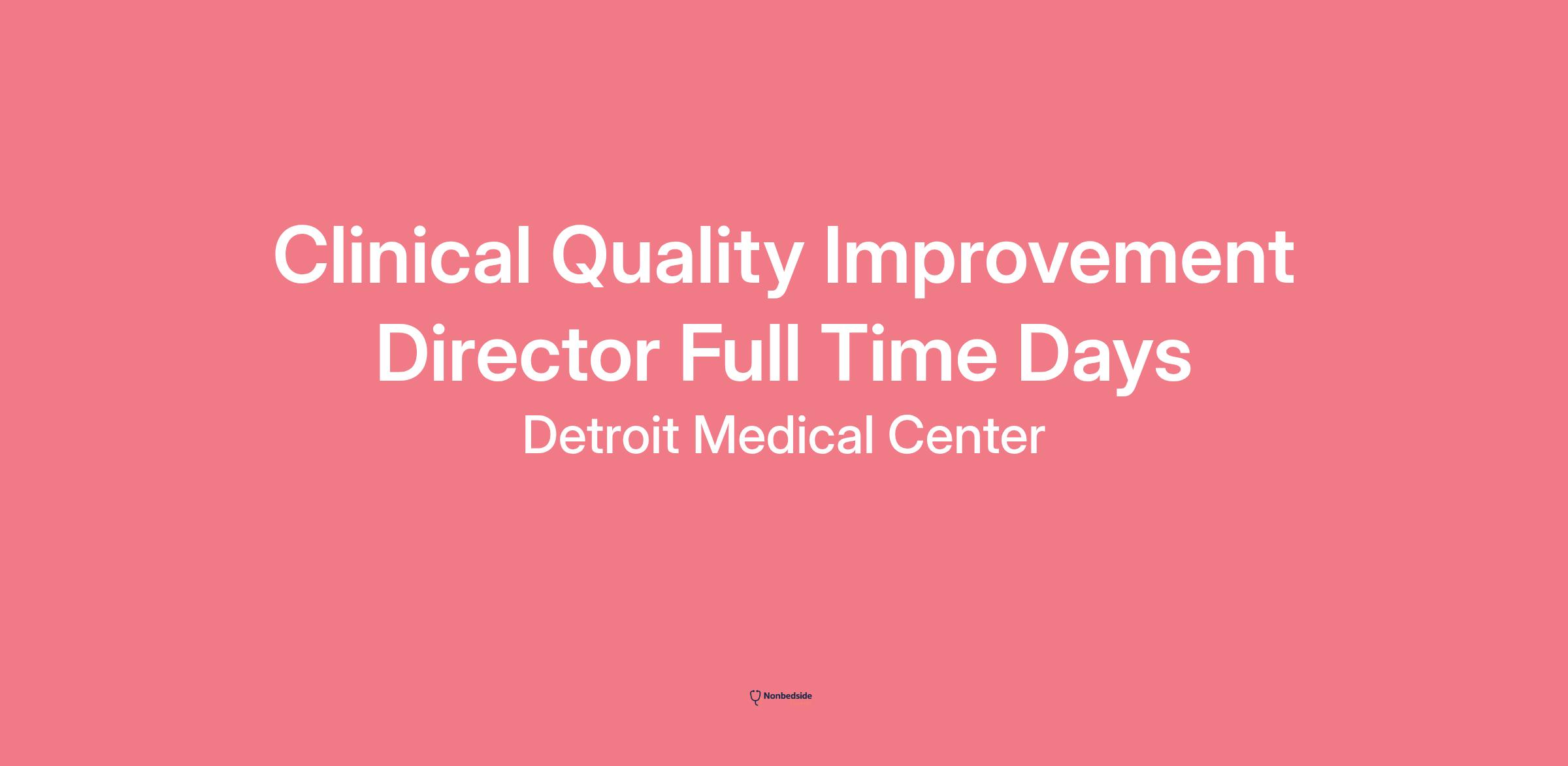 Overview Clinical Quality Improvement Director Full Time Days at DMC Sinai-Grace Hospital. In association with senior leadership at Sinai-Grace Hospital, and in conjunction with the DMC Chief Quality and Medical Safety Officer, provides leadership for the development and implementation of the Sinai-Grace Hospital Quality Improvement, Environment of Care and Infection Control programs. Develops and implements site and system policy and procedure modifications including program development and standards for program services. Develops site priorities for improvement and guides the site in the implementation and support of a clinical improvement and measurement methodology which will assist in achieving high clinical outcomes and quality patient satisfaction. Maintains a collaborative relationship with the medical staff to assist with the development of clinical services, the provision of quality patient care and the medical staff peer review process. Works collaboratively with the DMC Chief Quality and Safety Officer and other sites to identify and address medical safety issues and coordinate efforts to reduce errors. Coordinates site efforts to meet accreditation and regulatory requirements on a continuous basis (i.e., JCAHO, MPRO, QMS/ISO, etc.). Provides leadership in promoting the continuous improvement methodology, tools and incident reporting/risk reduction. Serves in a leadership role on the site LPICC and other committees. Oversees the development of policies for area(s) of responsibility. Approves policies and/or seeks other system, regional, clinical service approval as appropriate. Ensures the development of function procedures/protocols and secures system approval as necessary. Oversees the development of functional processes. Creates and seeks approval of organizational structures. Develops short to long range goals and measures for area(s) of responsibility and oversees the assessment of goal attainment. Develops, seeks approval of, monitors and ensures compliance with budget. Monitors activities for and ensures compliance with laws, government regulations, JCAHO requirements and DMC policies. As directed, implements external and internal audit recommendations. Ensures hospital departments achieve objectives for diversity of their suppliers.