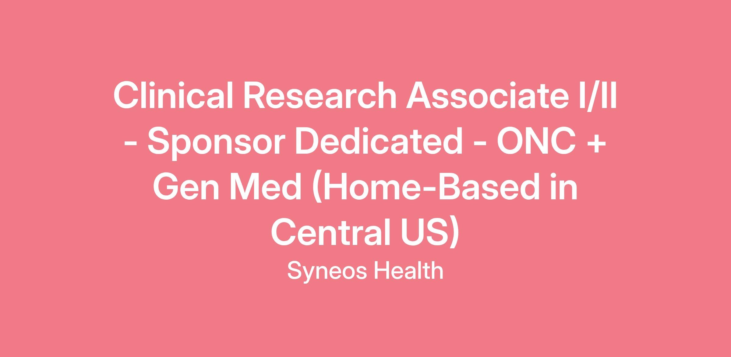 Clinical Research Associate I/II - Sponsor Dedicated - ONC + Gen Med (Home-Based in Central US)