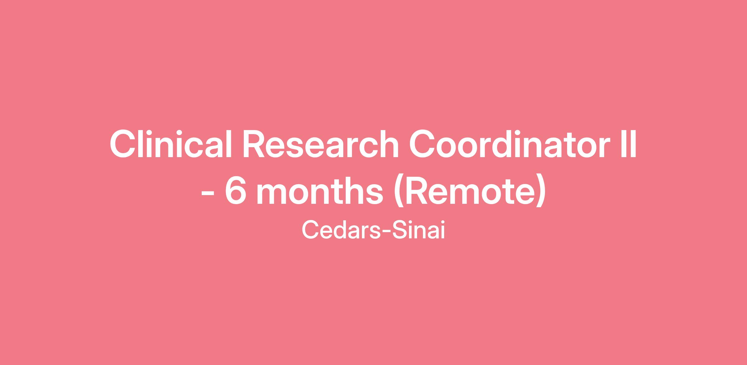 The Clinical Research Coordinator II works independently providing study coordination including screening of potential patients for protocol eligibility, presenting non-medical trial concepts and details, and participating in the informed consent process. Responsible for accurate and timely source documents, data collection, documentation, entry, and reporting including timely response to sponsor queries.