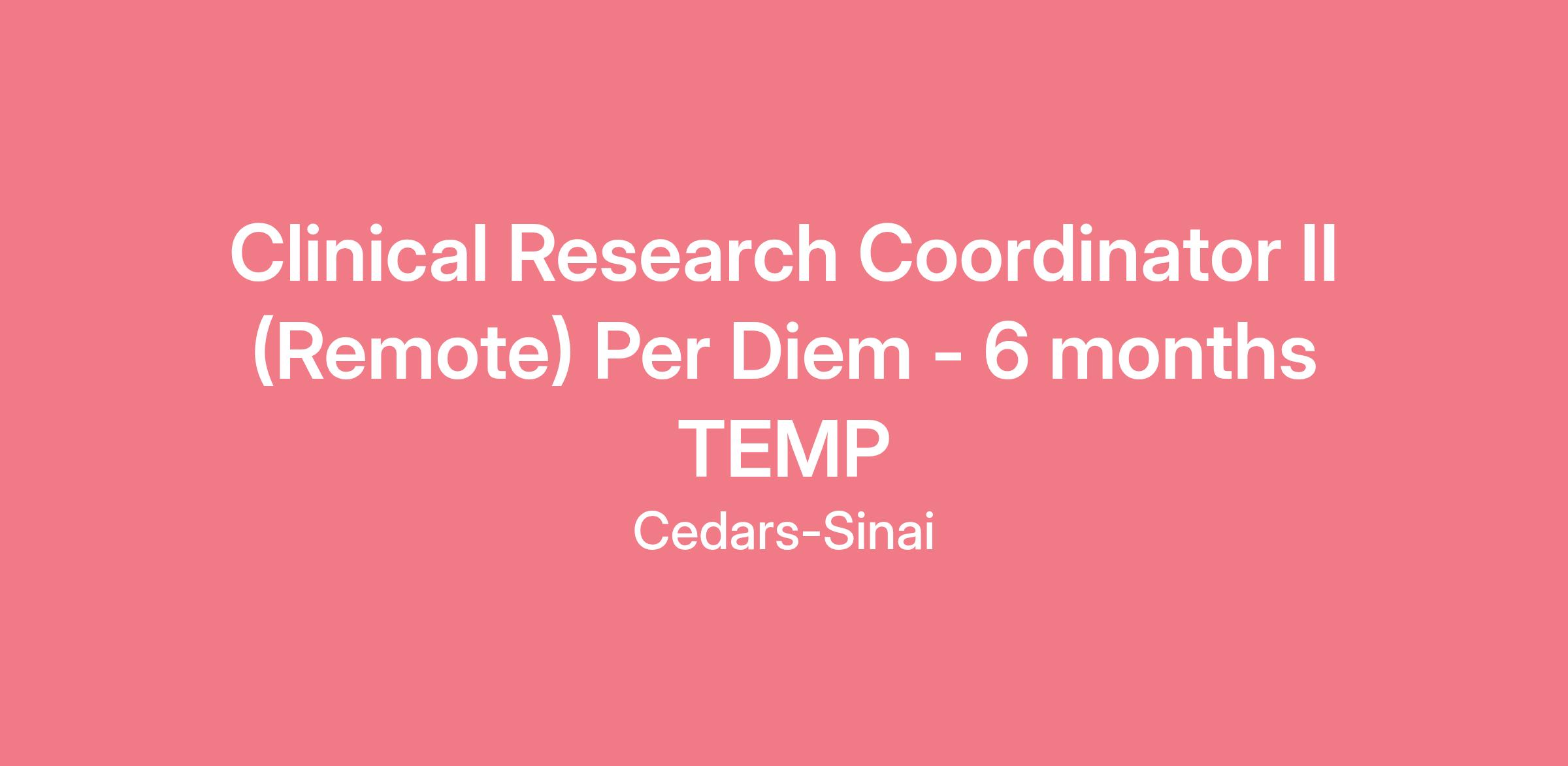 The Clinical Research Coordinator II works independently providing study coordination including screening of potential patients for protocol eligibility, presenting non-medical trial concepts and details, and participating in the informed consent process. Responsible for accurate and timely source documents, data collection, documentation, entry, and reporting including timely response to sponsor queries.