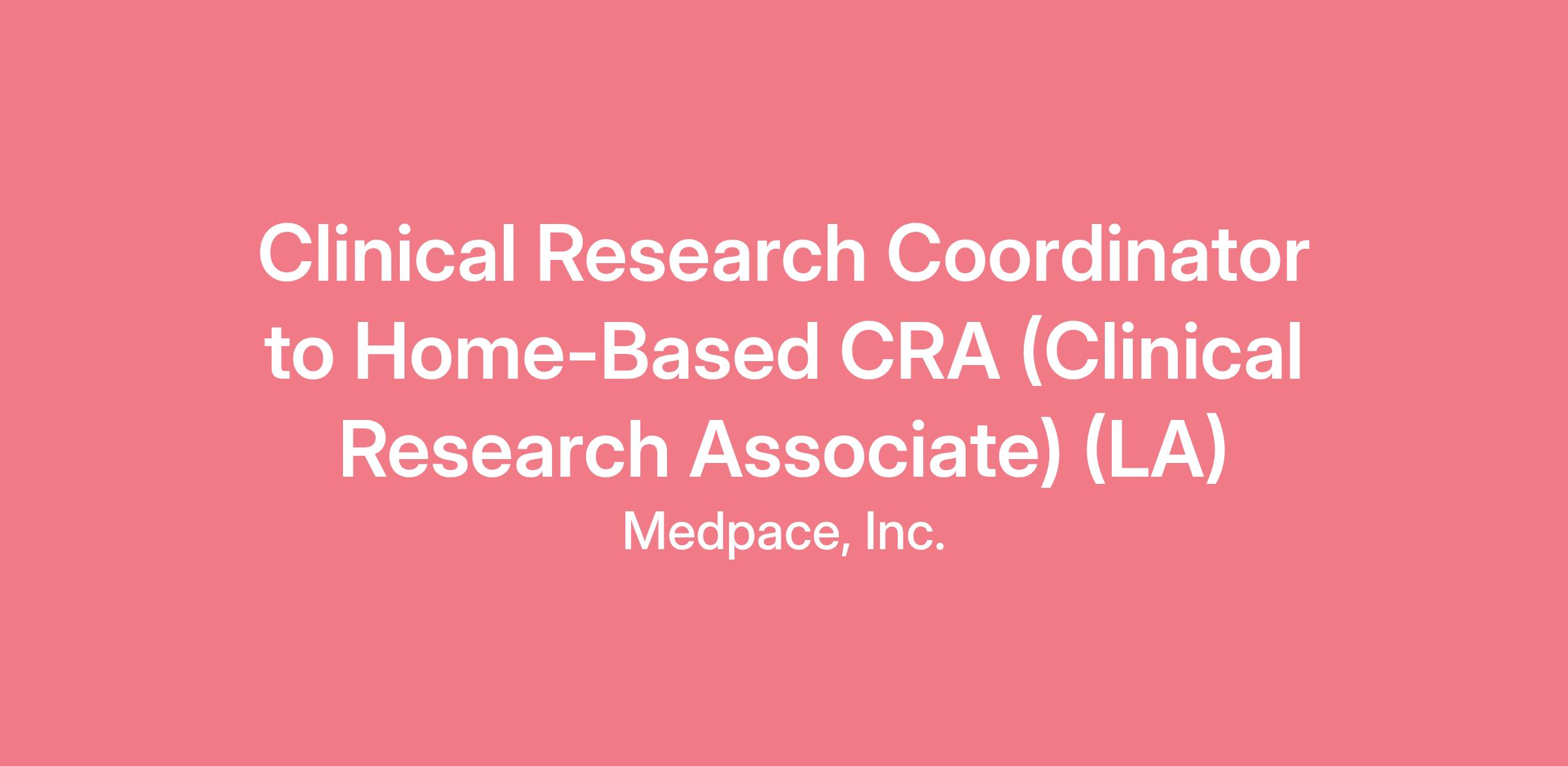 This is an exciting opportunity for clinical research professionals with at least one year of Clinical Research Coordinator experience to fill Clinical Research Associate (CRA) openings with Medpace. Through our PACE® Training Program, you will receive the training needed to become a fully functional CRA with the opportunity to work home-based. You will also have the opportunity to earn a generous travel bonus in addition to a competitive salary.