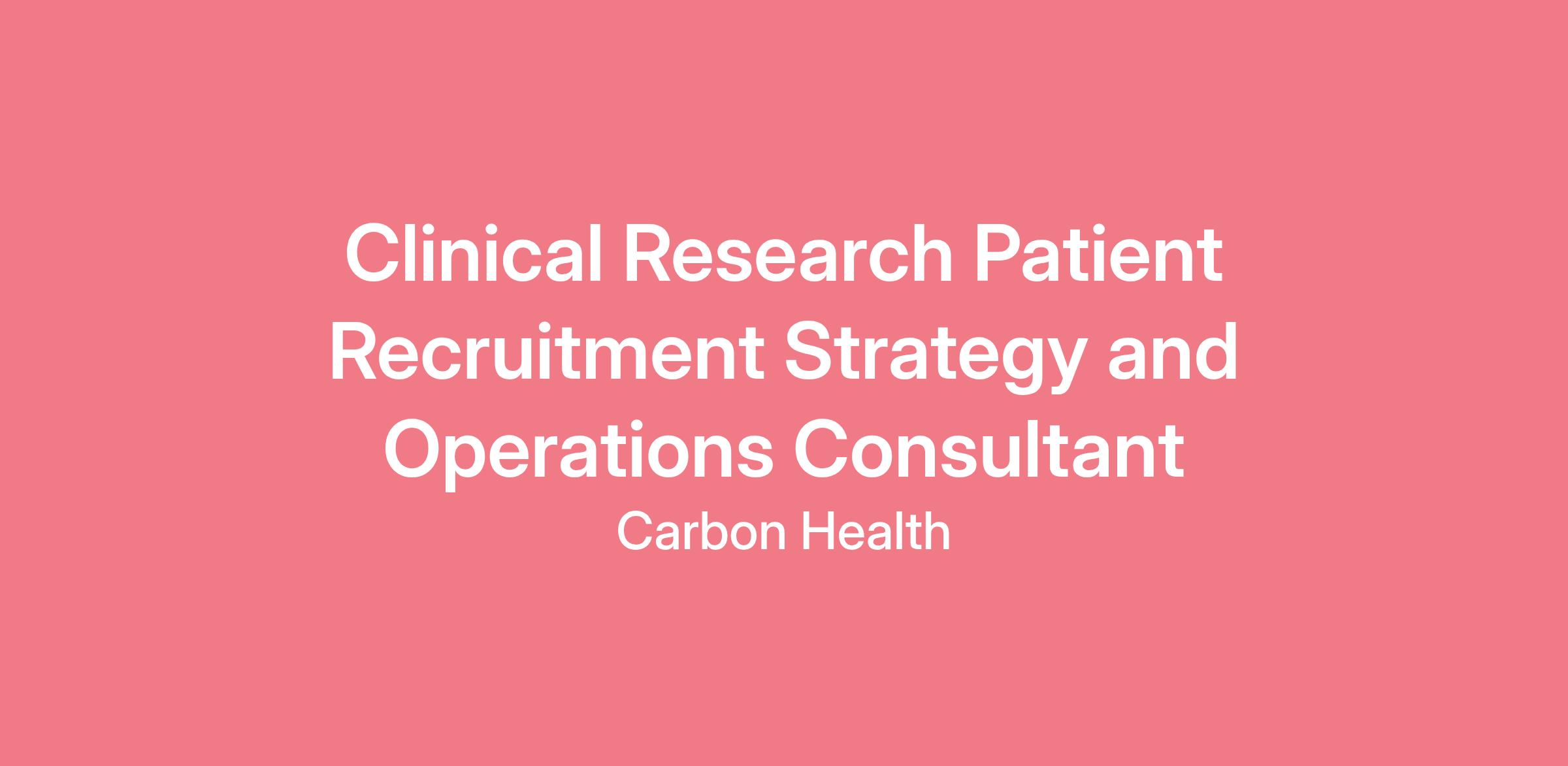 We’re seeking a Clinical Research Patient Recruitment Strategist and Operations contractor to support participant recruitment strategy and execution for Carbon Health’s clinical trials through Carbon for Research (carbonhealth.com/clinical-research). If you are passionate about clinical research —and enjoy creating innovative ways to connect patients with meaningful study opportunities—this is the role for you.