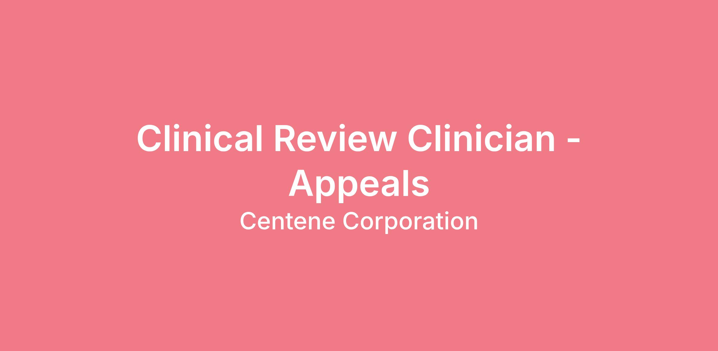 Position Purpose: Performs clinical reviews needed to resolve and process appeals by reviewing medical records and clinical data to determine medical necessity for services in accordance with policies, guidelines, and National Committee for Quality Assurance (NCQA) standards.