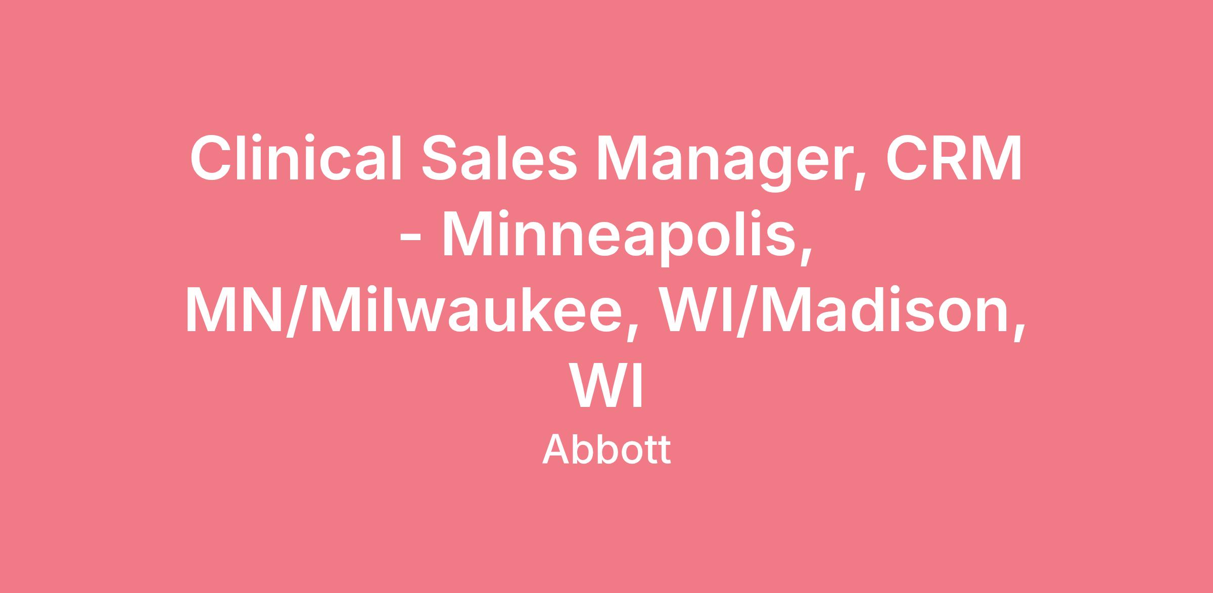 Clinical Sales Manager, CRM - Minneapolis, MN/Milwaukee, WI/Madison, WI