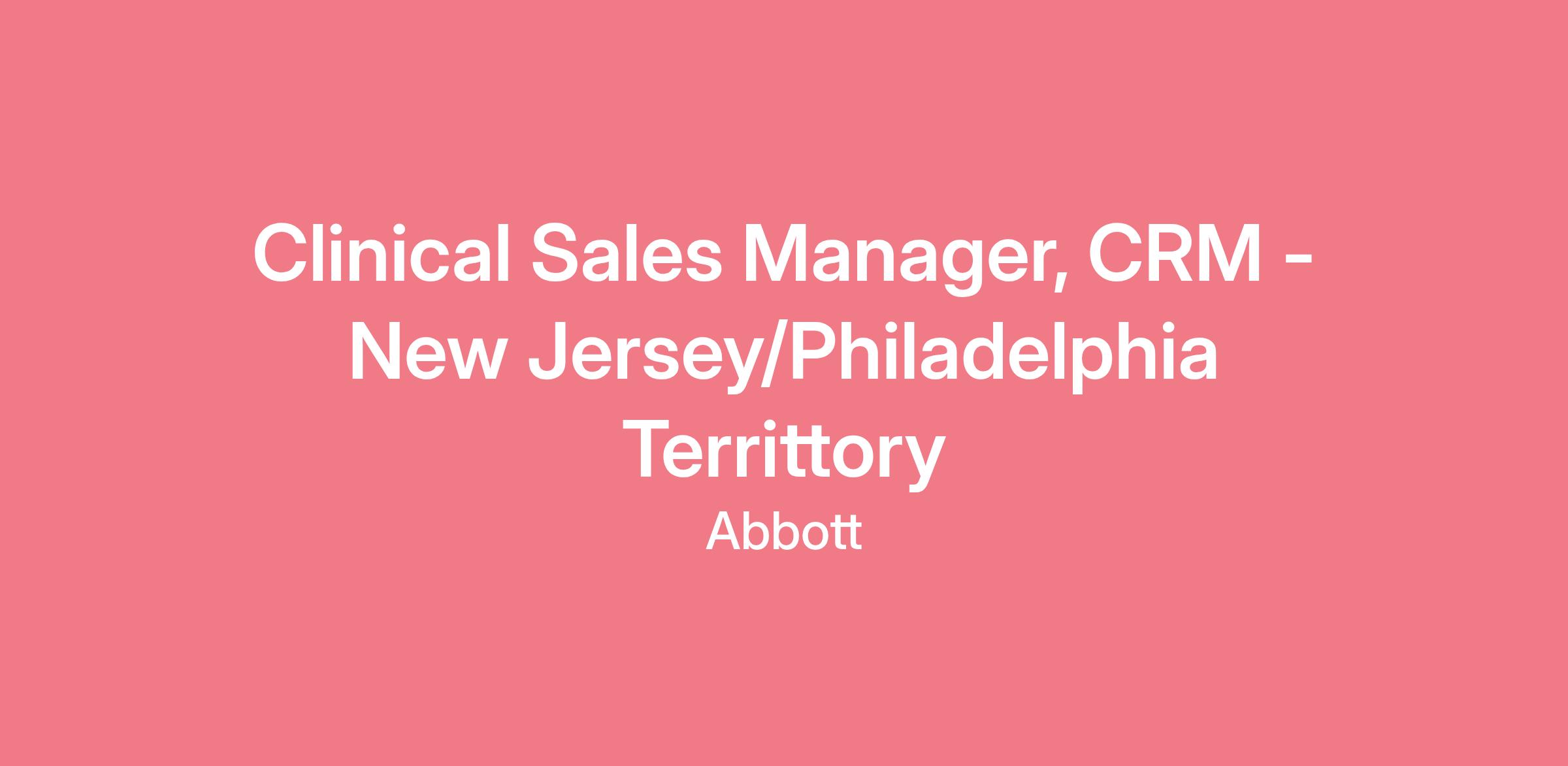 The Clinical Sales Manager position is a field-based position supporting Northern New Jersey and Philadelphia territory in the Cardiac Rhythm Management division. As a global leader in Cardiac Rhythm Technologies, we focus on innovative technologies that can improve the way doctors treat people with heart arrhythmias or irregular heartbeats.