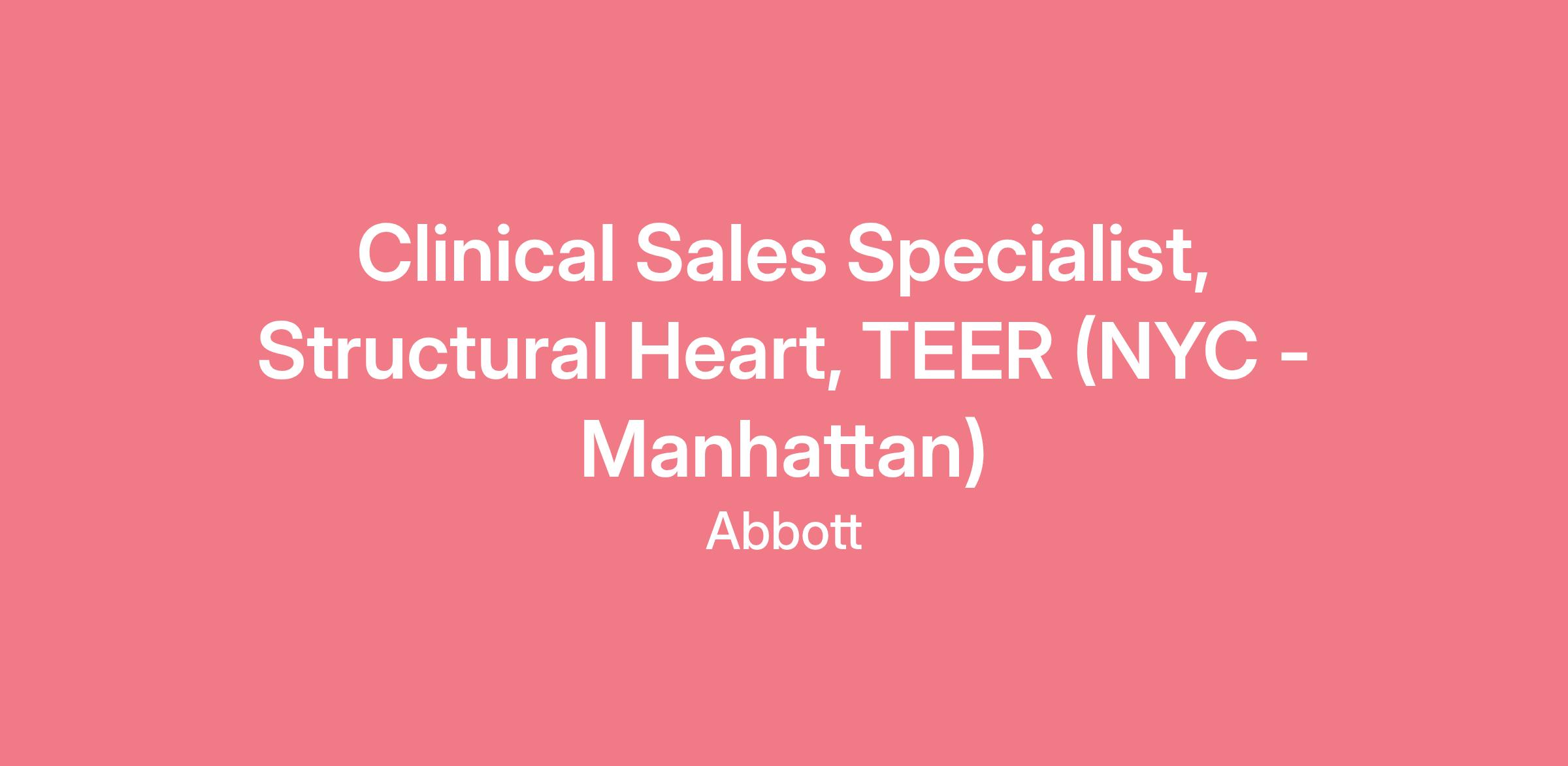 Clinical Sales Specialist, Structural Heart, TEER (NYC - Manhattan)