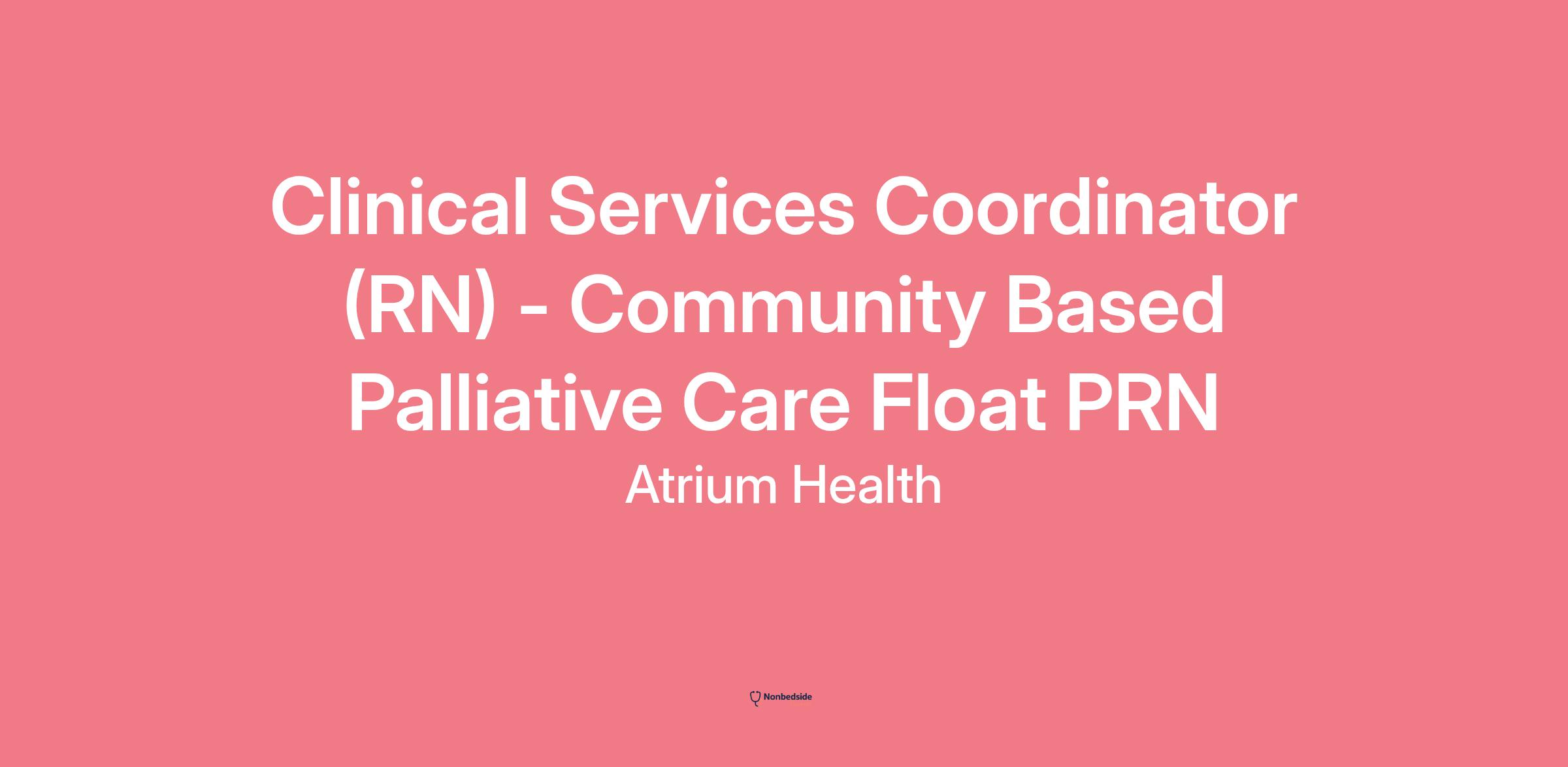 Join to apply for the Clinical Services Coordinator (RN) - Community Based Palliative Care Float PRN role at Atrium Health