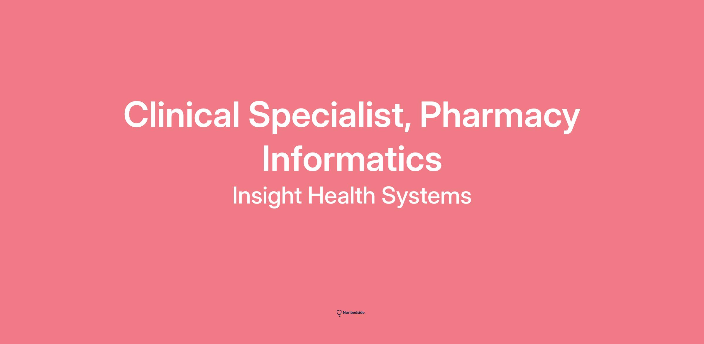 Insight Health Systems is hiring a Clinical Specialist, Pharmacy Informatics. 1 week ago posting.
