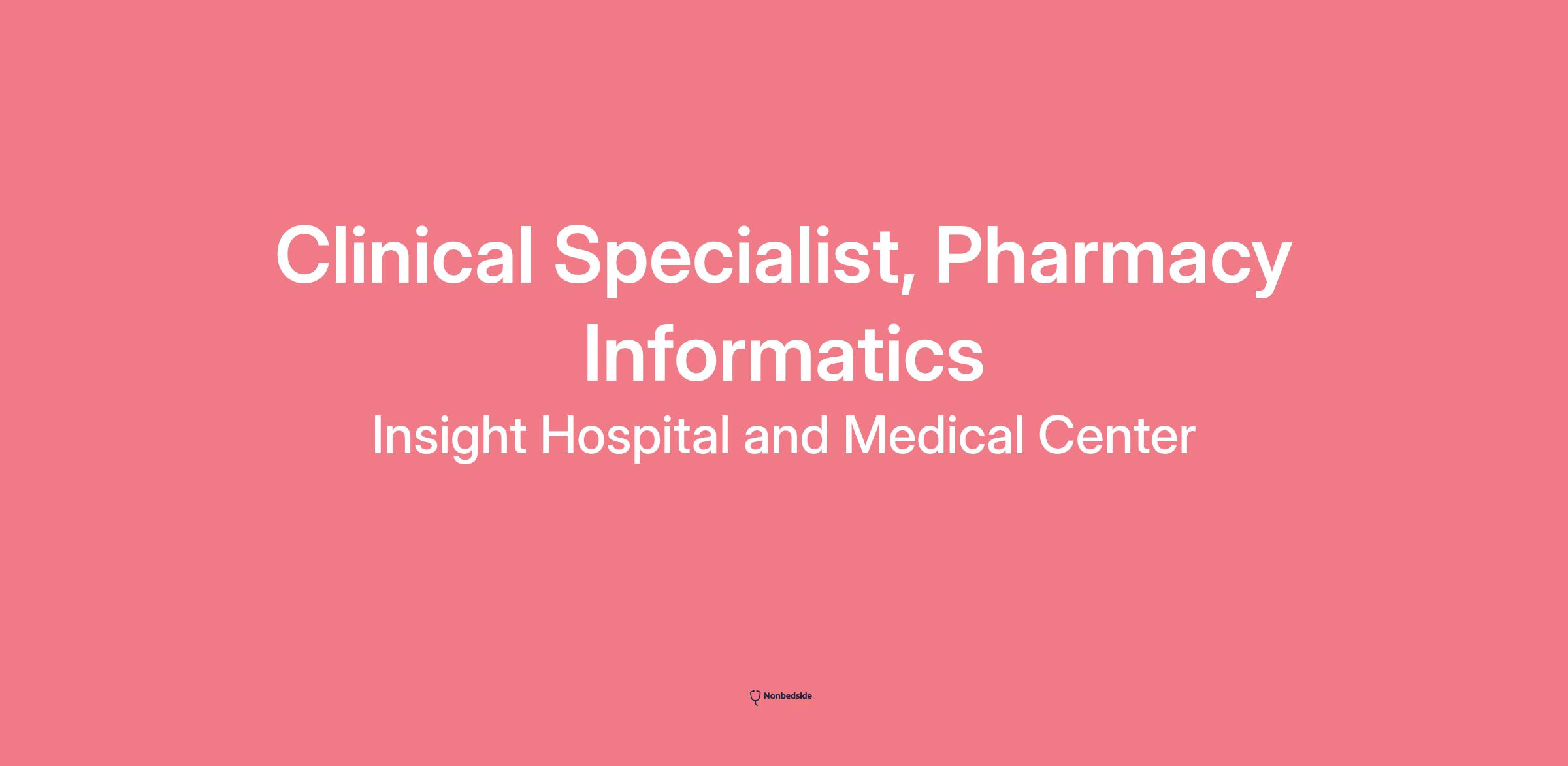 I.GENERAL SUMMARY: The Informatics clinical specialist will be responsible for the clinical and medication use policy dimensions of the pharmacy information system, the integrated medical record, clinical documentation system, and the inpatient prescriber order entry systems. This pharmacist is responsible for the coordination of the system with an intimate understanding of changing scientific and biomedical evidence, a dynamic medication distribution system, and maturing technology. The incumbent in this position will achieve in-depth knowledge of the software and build and maintain the electronic medical record (EMR) and its medication‑related components. They will perform regular day‑to‑day communication with the EMR vendor installation team, review the software, analyze business operations, and work with Information System staff and Clinical team members to tailor the system to fit department needs. The incumbent will perform in‑depth analyses of clinical and technical issues associated with the use of the EMR and develop and document internal procedures that will be used in conjunction with the EMR applications. These duties are performed in a highly confidential manner in accordance with the mission, values, and behaviors of Insight Hospital and Medical Center. Employees are expected to provide a high quality of care, service, and kindness toward all patients, staff, physicians, volunteers, and guests.