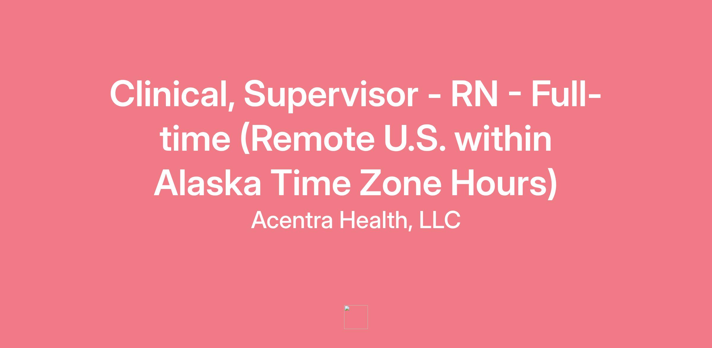 Acentra Health is looking for a Clinical, Supervisor - RN - Full-time (Remote within Alaska Time Zone Hours) to join our growing team.