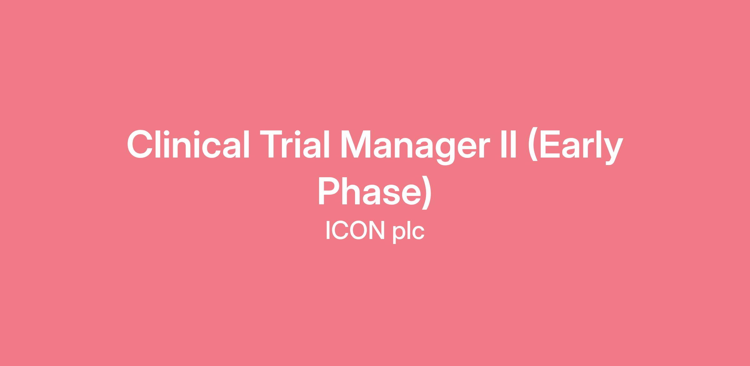 We are currently seeking a Clinical Trial Manager II to join our diverse and dynamic team. As a Clinical Trial Manager II at ICON, you will play a pivotal role in designing and analyzing clinical trials, interpreting complex medical data, and contributing to the advancement of innovative treatments and therapies. This role with be supporting our Early Phase team.
