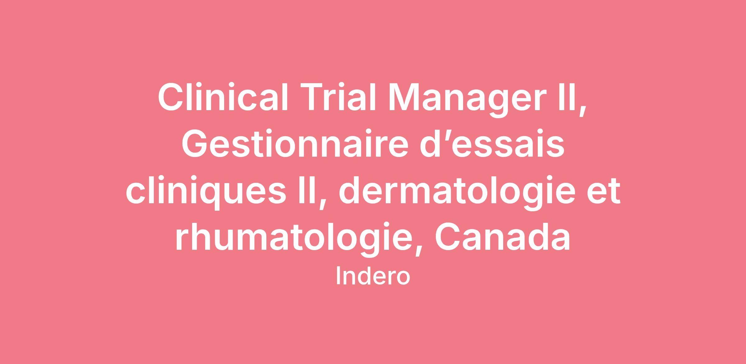 Gestionnaire d’essais cliniques II, dermatologie et rhumatologie, Canada