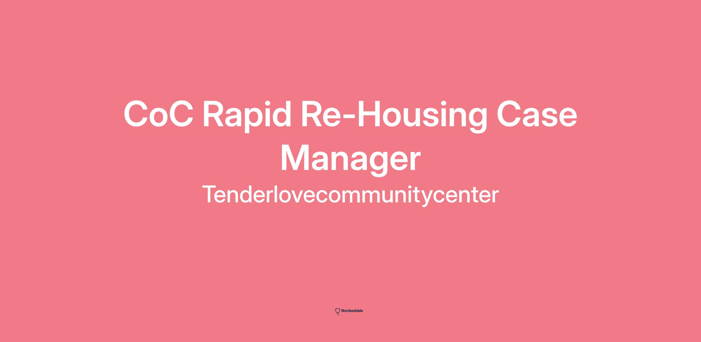 TenderLove Community Center is seeking a compassionate, organized, and mission-driven Rapid Rehousing Case Manager to join our team under the Continuum of Care (CoC) Program. This individual will provide trauma-informed, client-centered case management to individuals and families enrolled in our Rapid Rehousing (RRH) program. The Case Manager will report directly to the CoC Program Director and play a critical role in helping clients transition from homelessness to stable, independent living.