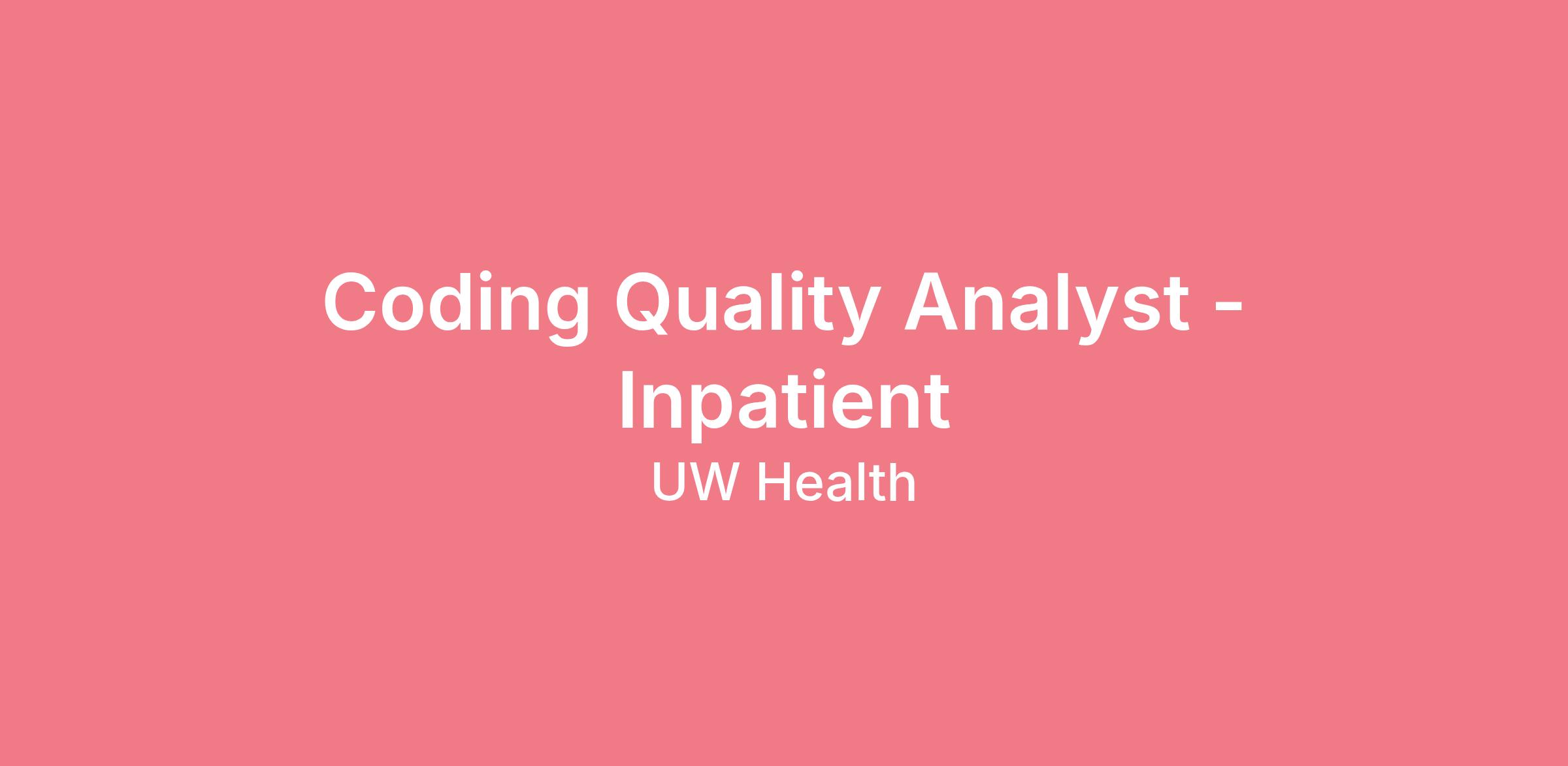 We are seeking a Coding Quality Analyst to: