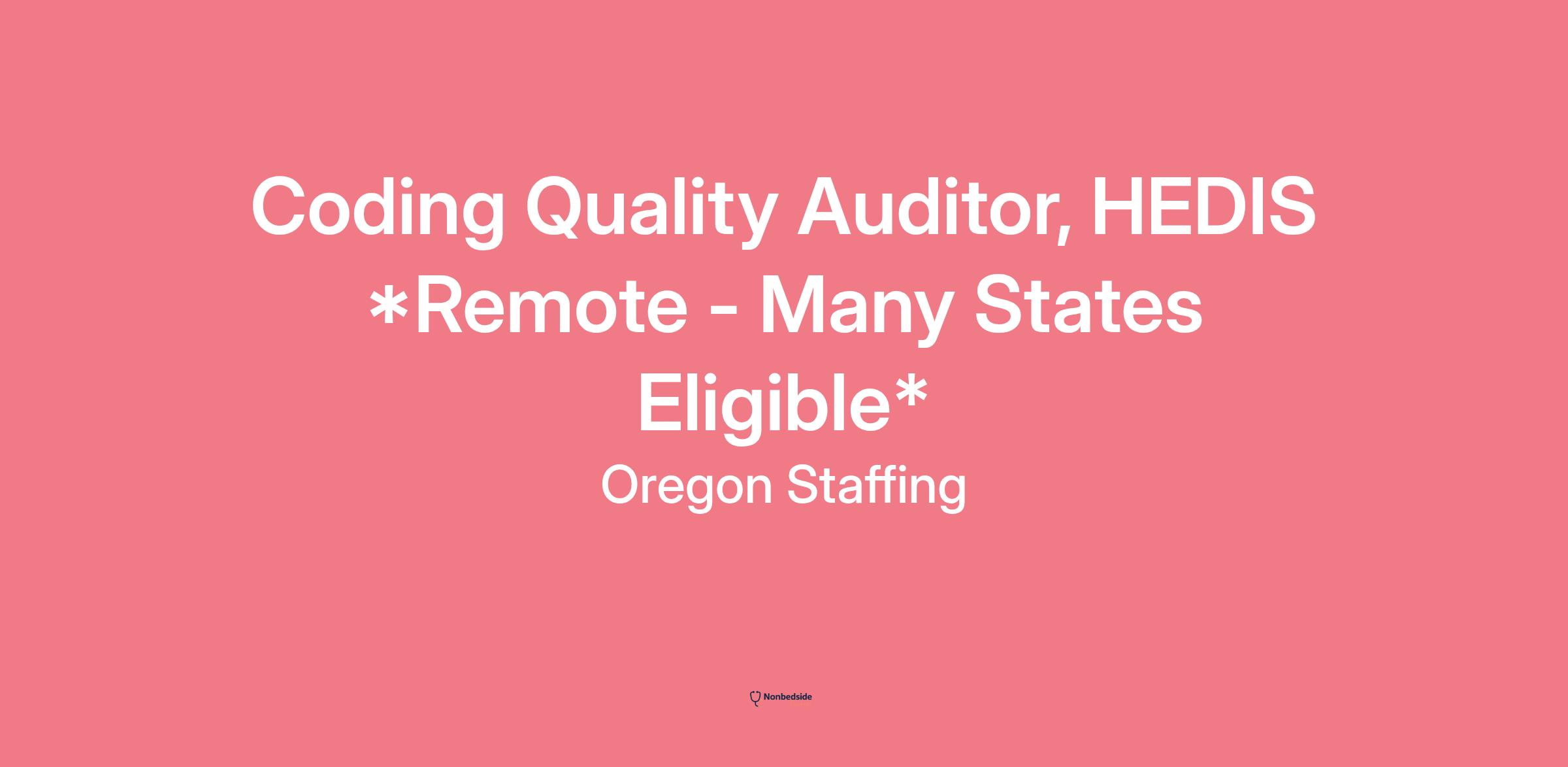 - This posting is for multiple openings of a Coding Quality Auditor, HEDIS