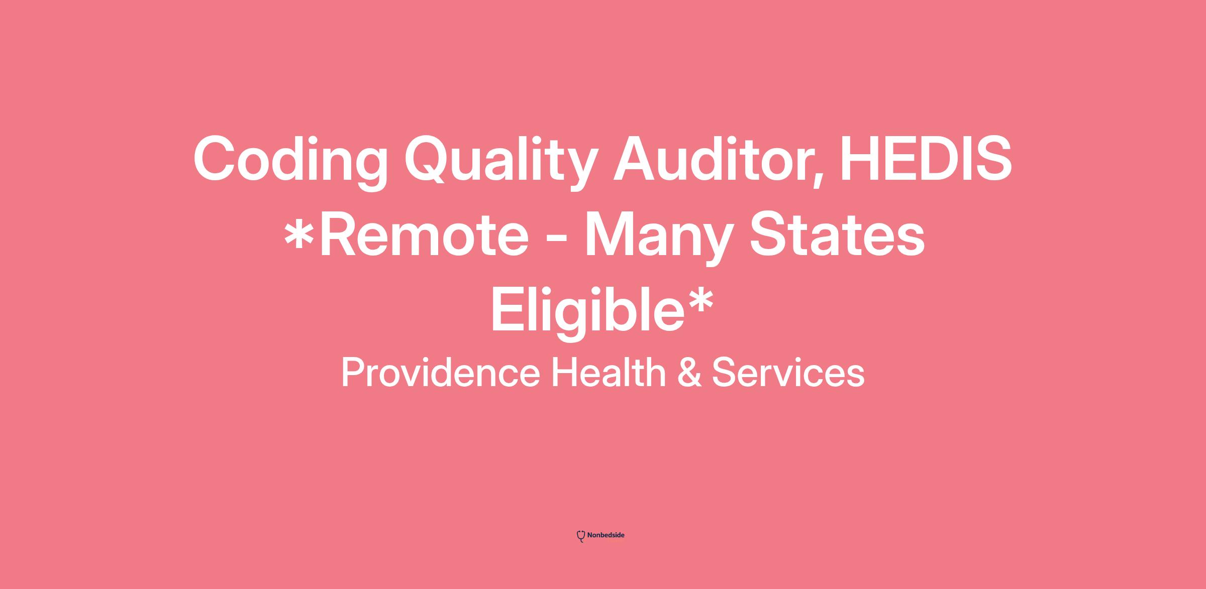 Coding Quality Auditor, HEDIS *Remote - Many States Eligible*