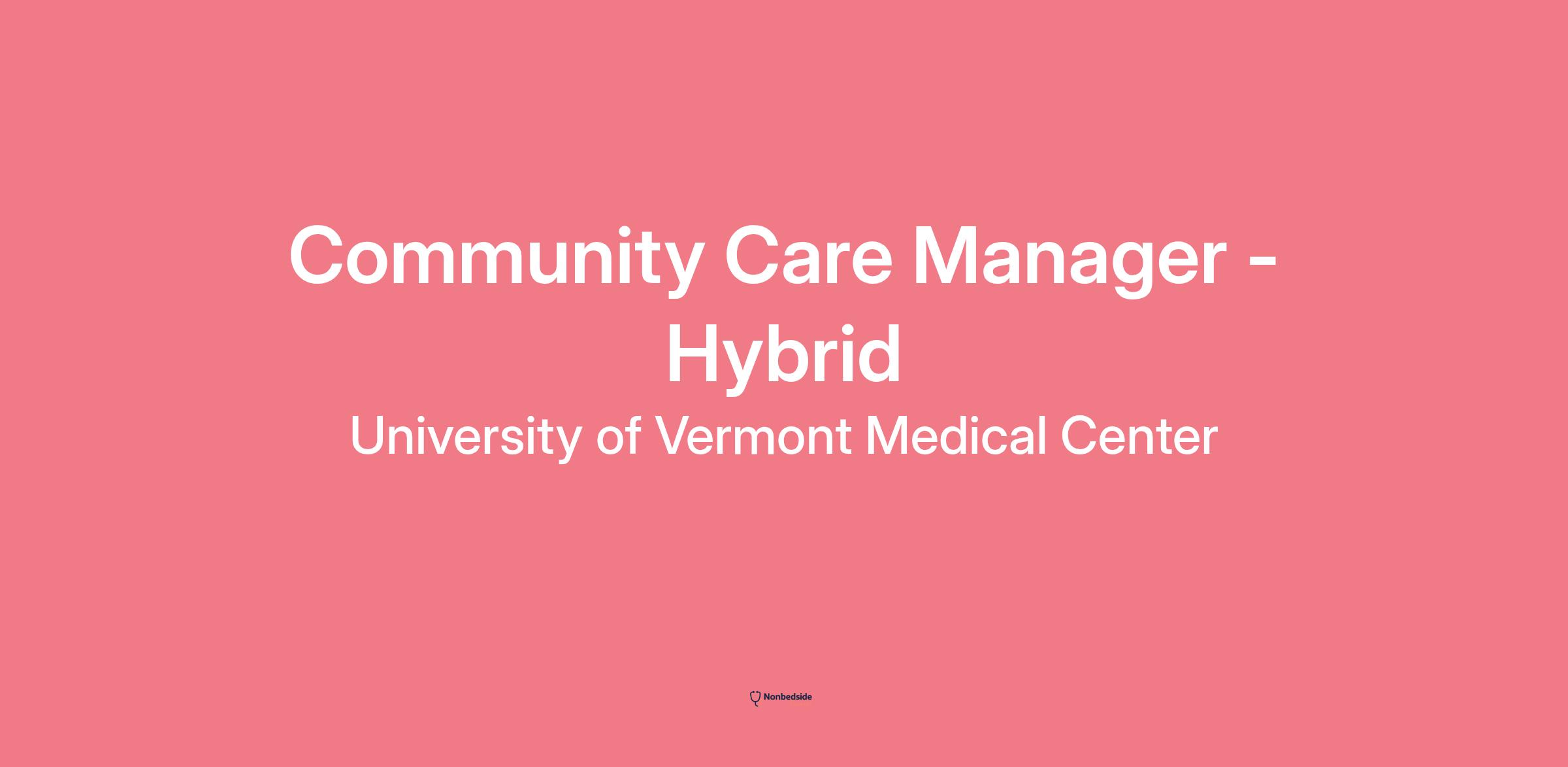 Building Name: AHMC - Alice Hyde Medical CenterLocation Address: 133 Park Street, Malone New YorkRegularDepartment: Case Management Shared ServicesPart TimeStandard Hours: 20Biweekly Scheduled Hours: 40Shift: DayPrimary Shift: 8:00 AM - 4:30 PMWeekend Needs: NoneSalary Range: Min $35.78 Mid $44.73 Max $53.67Recruiter: Kate Davies**UVM Health is hiring a Community Care Manager to join their team at UVM Health- Alice Hyde Medical Center!*** The Community Care Manager will use our current *Working to Reduce Admissions Program* (WRAP) model to work with patients accessing the emergency room at UVM Health- Alice Hyde Medical Center in Malone, NY.* This is a hybrid role with work location divided between AHMC Emergency Department, community, and remote (home) office.* This position is part time with 40 scheduled bi-weekly hours.****JOB DESCRIPTION****Our Community Care Manager coordinates and delivers an innovative approach to identified patients eligible for WRAP (Working to Reduce Admissions Program). They promote effective utilization and monitoring of health care resources; and assume a critical role beside and in alignment with the interdisciplinary teams to achieve optimal patient-centered, clinical, and resource outcomes. They are responsible for managing the WRAP Population through the WRAP program and process in alignment with the programmatic policies and procedures. Actively participates in mentorship, training, and process improvement within their assigned organization and throughout UVMH.**CORE COMPETENCIES AND SKILLS****1. Clinical Expertise & Case Management*** Strong knowledge of care management standards and evidence-based practices.* Experience in care coordination and managing complex patient populations.* Ability to assess and intervene in psychosocial, mental health, and chronic care situations.* Familiarity with Medicare, Medicaid, and insurance structures.**2. Communication & Interpersonal Skills*** Excellent verbal and written communication.* Ability to build honest, trusting relationships with patients, families, and interdisciplinary teams.* Cultural competence and sensitivity to diverse populations.**3. Critical Thinking & Problem Solving*** Skilled in identifying Drivers of Utilization (DOU) and proposing alternative care plans.* Ability to assess risk, manage transitions of care, and coordinate community resources.* Data-driven decision-making and program evaluation.**4. Teamwork & Collaboration*** Works effectively within interdisciplinary teams including pharmacists, care coordinators, and social agencies.* Promotes a culture of teamwork, respect, and ethical practice.* Supports mentorship and training initiatives.**5. Professionalism & Accountability*** Upholds organizational mission, values, and standards of excellence.* Maintains confidentiality and complies with regulatory requirements (e.g., HIPAA).* Demonstrates integrity, fairness, and commitment to continuous improvement.**6. Technical & Regulatory Knowledge*** Understanding of clinical guidelines, legal issues, and compliance standards.* Proficient in documentation and use of care management systems.* Maintains up-to-date knowledge of community and network resources.****EDUCATION****Master's in Social Work (MSW) from an accredited school of social work. LICSW preferred.***OR***Nursing Pathway:Current RN licensure or compact licensure recognized by the State of Vermont required.***OR***Master's degree from an accredited institution in a Health or Human Services field. Licensure preferred.*Case management accreditation by a nationally recognized accrediting body for case management (examples: CCM, ACM or ANCC certifications), preferred; or commitment to obtain upon hire.*****EXPERIENCE****2-3 years of clinical experience in a healthcare setting (or equivalent)Care Management/Care Coordination experience required.As a team, University of Vermont Health improves the lives of our patients by delivering outstanding care cost-effectively, as close to patient's homes as possible. Working together to better serve our communities makes us stronger, focused on collaboration instead of competition.******BENEFITS****** At UVMH, we support our employees as passionately as we care for our patients. We offer a comprehensive, total compensation package that includes salary, health and wellness benefits, paid time off, and more.* https://******LEARN MORE******* **Learn more about our team:*** **Find more information about University of Vermont Health here:**Alice Hyde Medical Center is part of The University of Vermont Health Network, a five-hospital network serving patients and their families in Northern New York and Vermont. While we have changes our name, our commitment to the community remains the same.Our hospitals and physicians are bringing in the best of community and academic medicine together as one, sharing their knowledge and resources to give you access to the leading-edge technology, advanced treatment options and the highest level of compassionate care. All of this, closer to home.Quality, caring, innovation and community. This is the heart of science and medicine. We're always here for you, call us at (518) 483-3000.