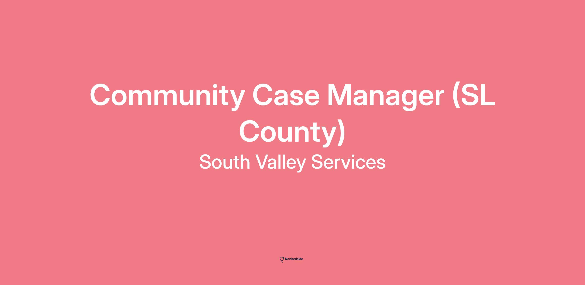 Join to apply for the Community Case Manager (SL County) role at South Valley Services .