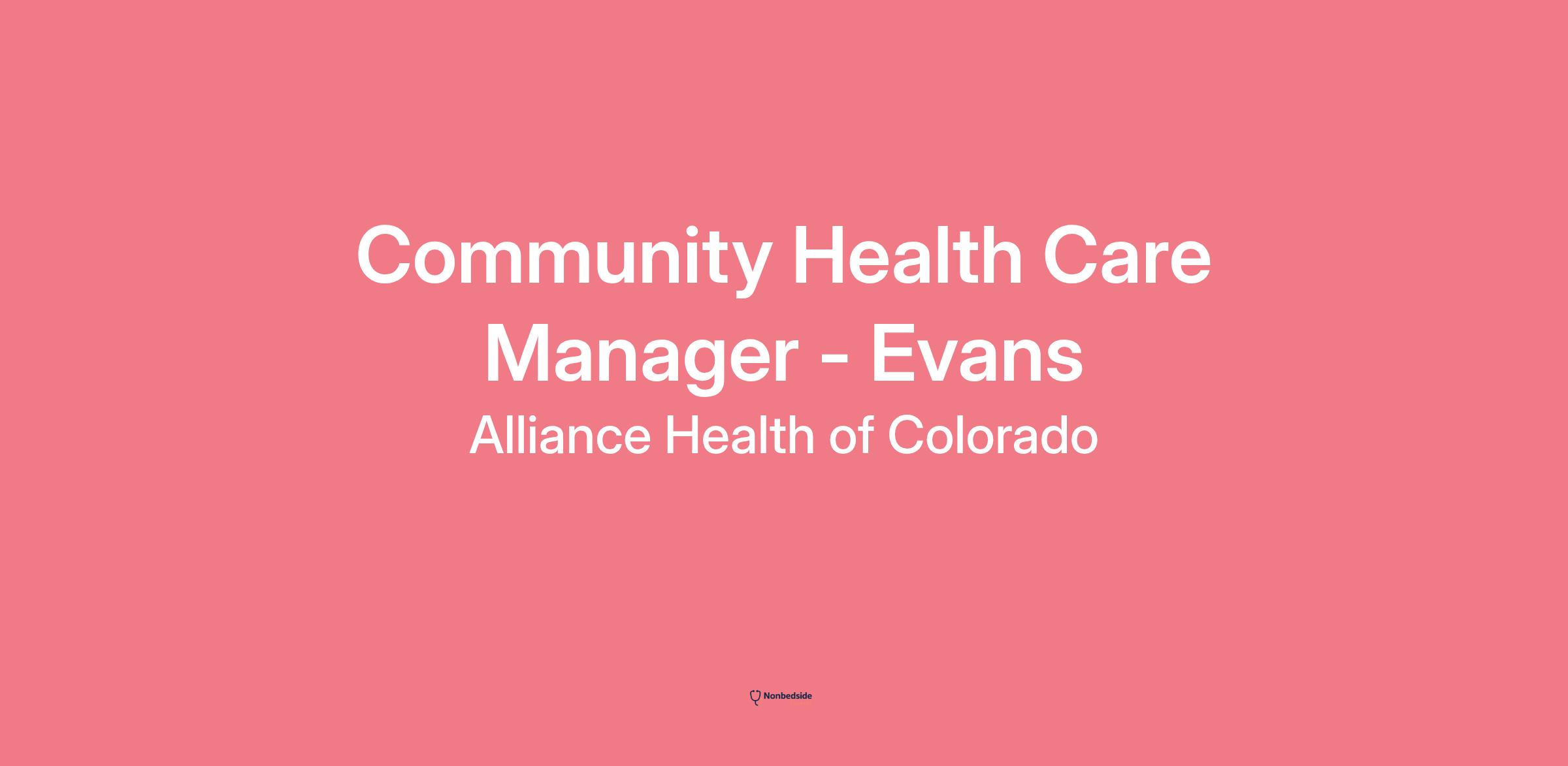 Join to apply for the Community Health Care Manager - Evans role at Alliance Health of Colorado .