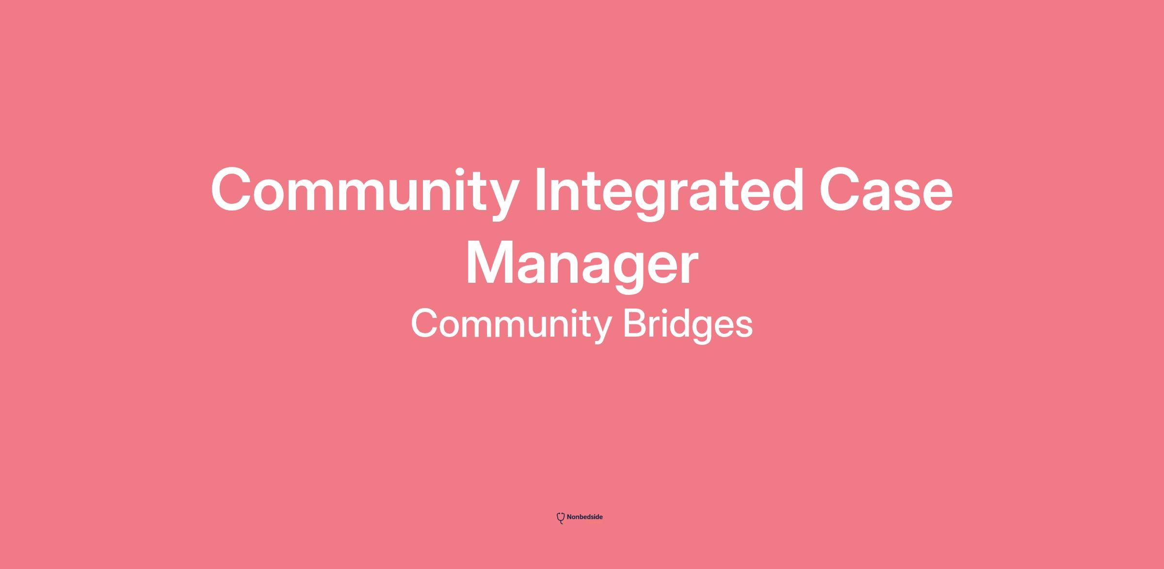 Join to apply for the Community Integrated Case Manager role at Community Bridges .