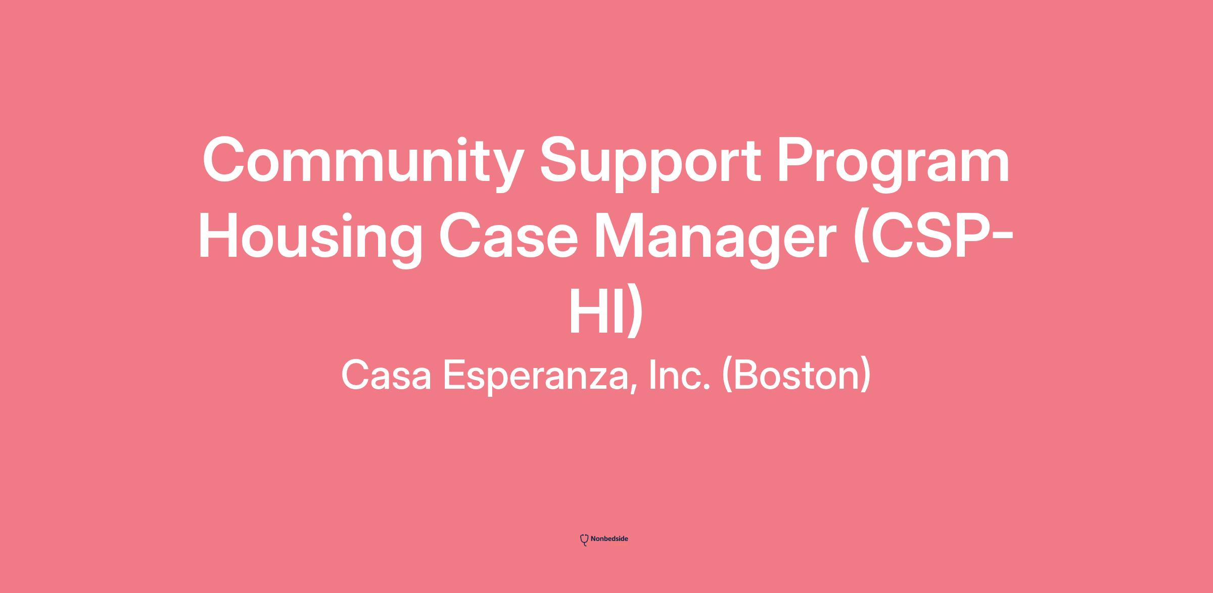 Join to apply for the Supportive Housing Case Manager (CSP-HI) role at Casa Esperanza, Inc. (Boston)