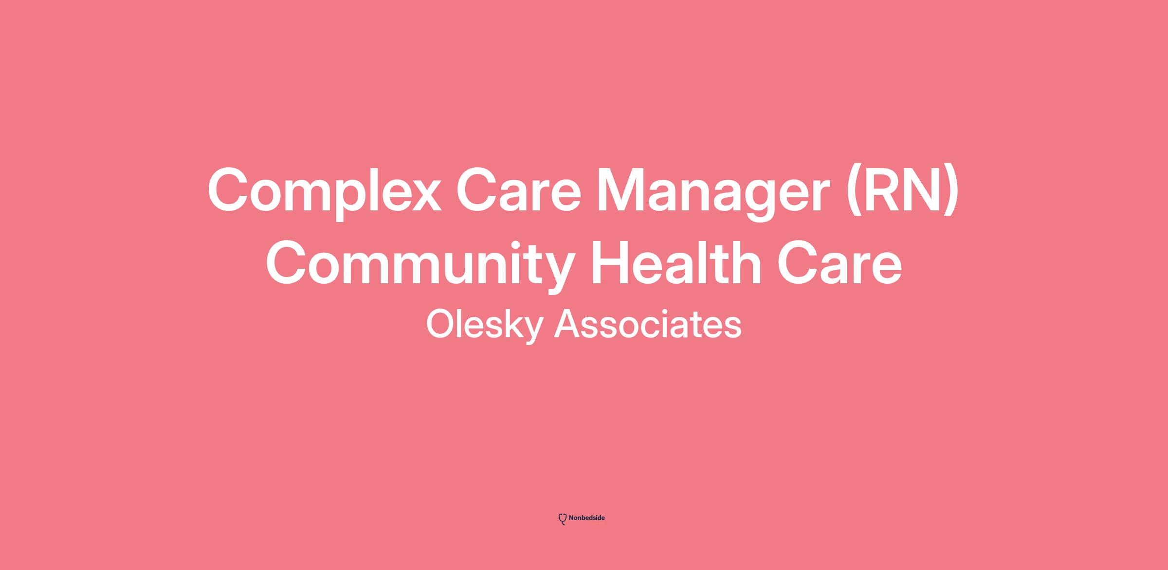 Complex Care Manager (RN) Community Health Care Olesky Associates, Inc. has been in the placement / recruiting industry for three decades. We offer an extensive array of services, ranging from physician placement to practice and hospital brokering.