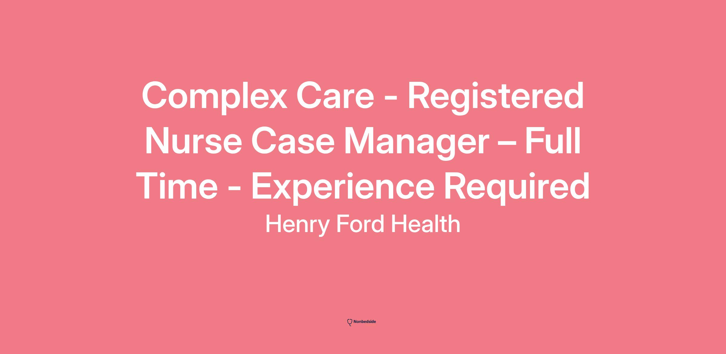 Join to apply for the Complex Care - Registered Nurse Case Manager – Full Time - Experience Required role at Henry Ford Health.