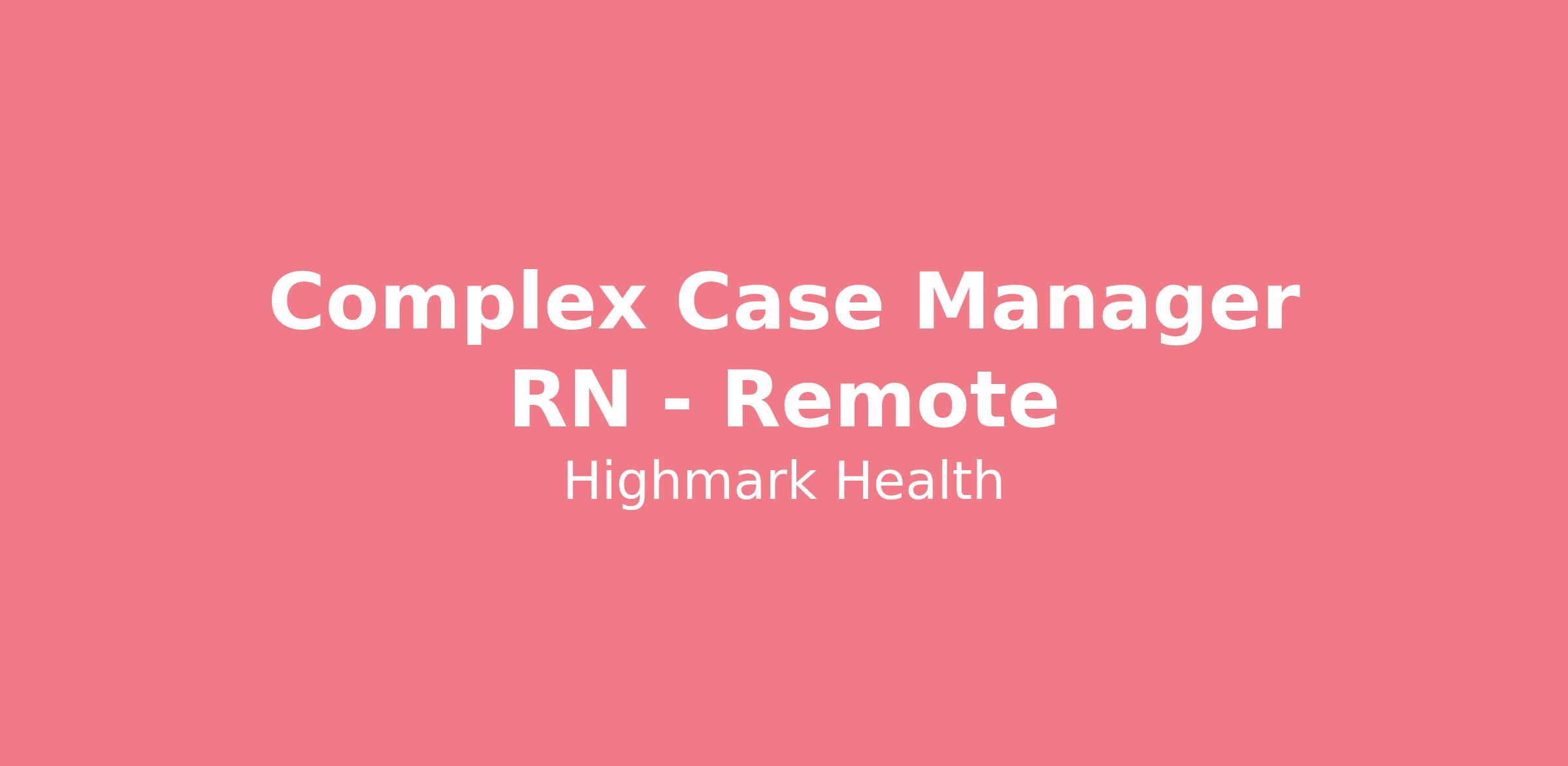 Complex Case Manager RN - Remote