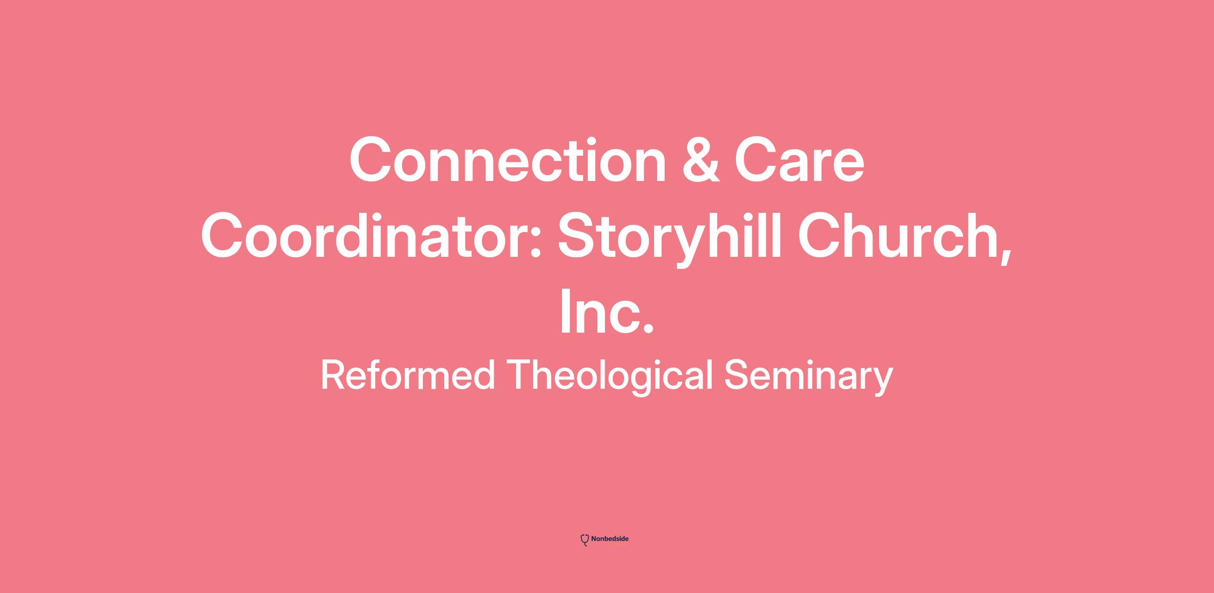 Connection & Care Coordinator Storyhill Church, Inc. seeks a Connection & Care Coordinator to partner with the Director of Small Groups in fostering community care beyond weekly worship. The coordinator will serve as the main contact for acute needs, develop care strategies, and support ongoing member wellbeing.