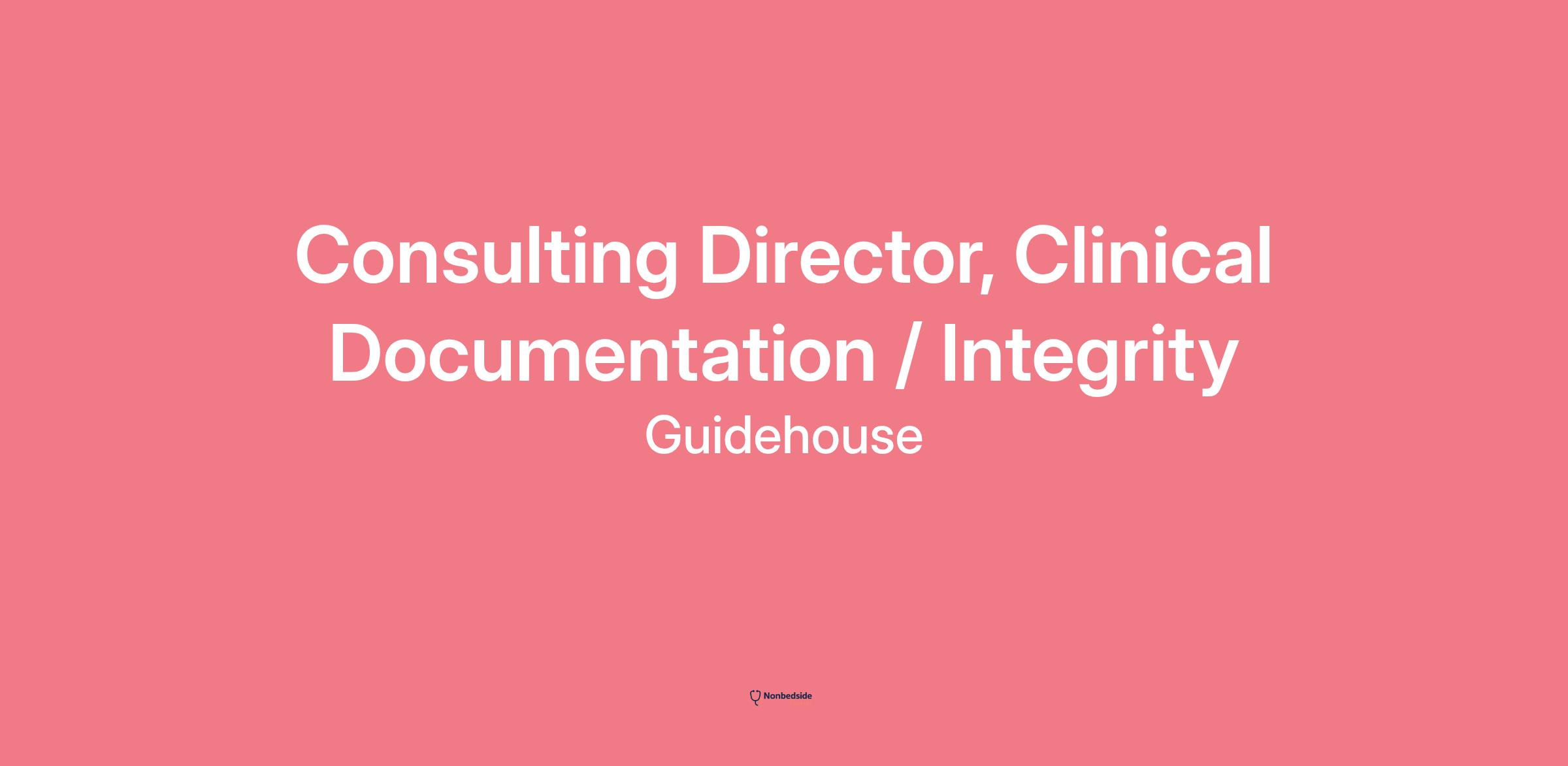 Consulting Director, Clinical Documentation / Integrity Join to apply for the Consulting Director, Clinical Documentation / Integrity role at Guidehouse